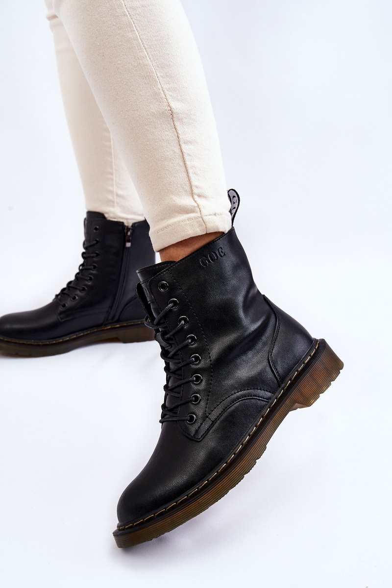 Classic GOE boots are made of high-quality natural leather. They have lacing and a zipper on the side of the upper. Boots inside have been insulated with a footwear blanket. The model is mounted on a flat heel and a delicate platform. In addition, the heel is stiffened. The perfect model for many styles! When choosing a size, please refer to the size chart.