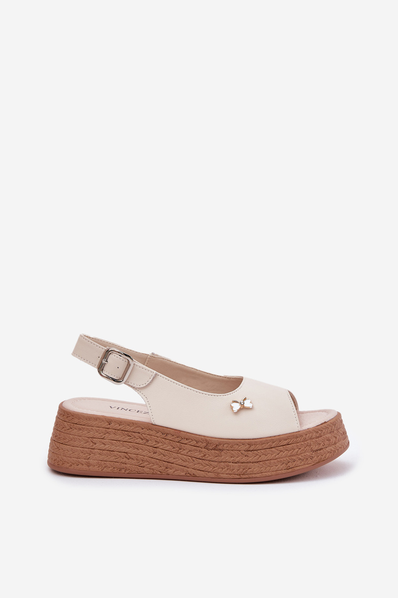 Womens Leather Wedge Sandals Vinceza 41476 Beige