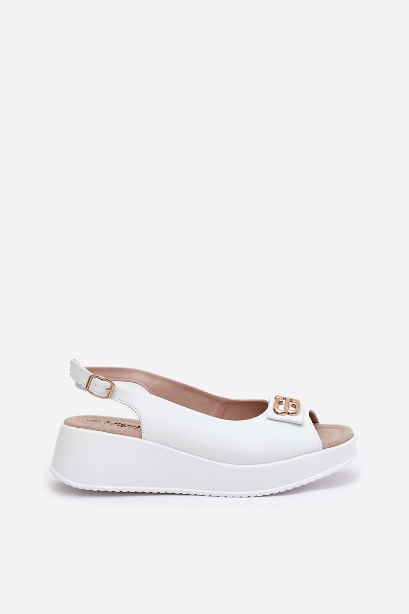 Women's Leather Wedge Sandals With Decorative Detail White S.Barski LR51-593