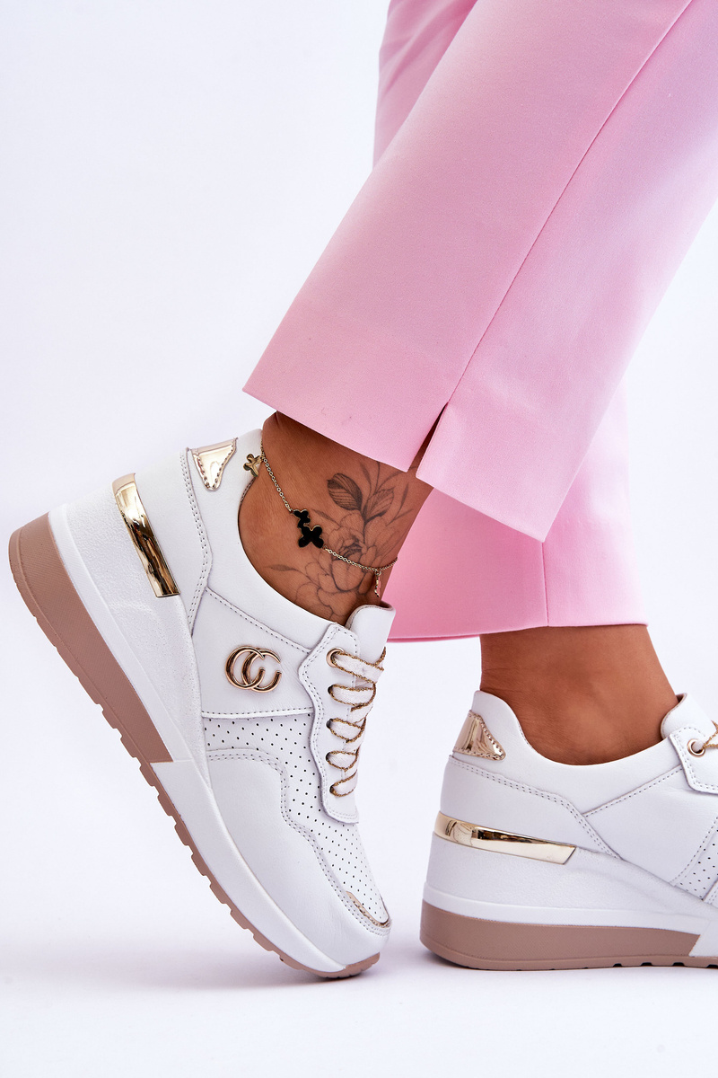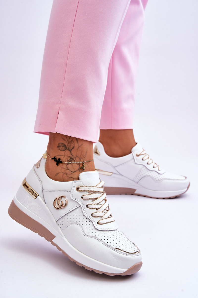 Women's Leather Wedge Sports Shoes White and Gold Rebeca