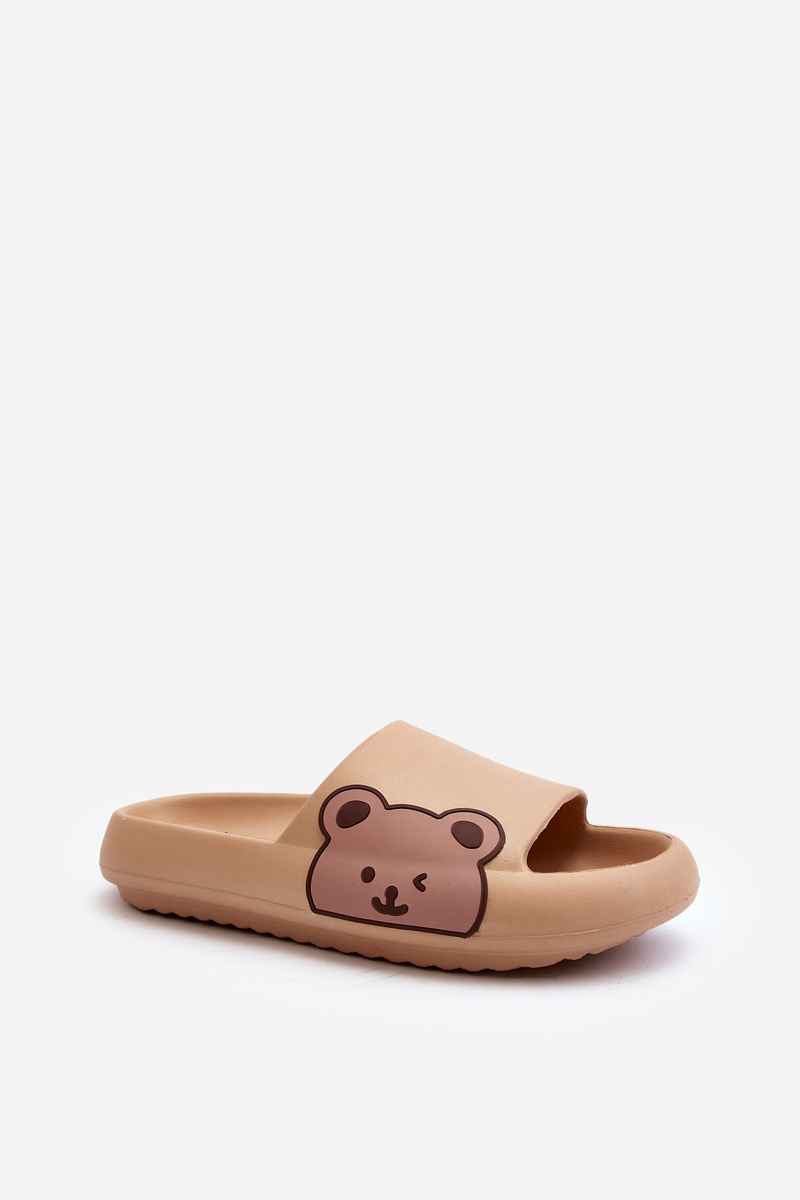 Women's Lightweight Foam Slippers with Bear Motif Dark Beige Parisso