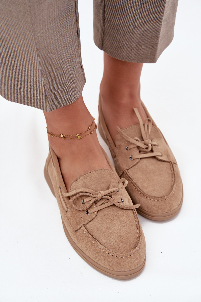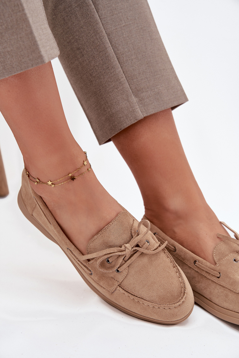 Women's Loafers Flat Moccasins With Tie Beige Zalina