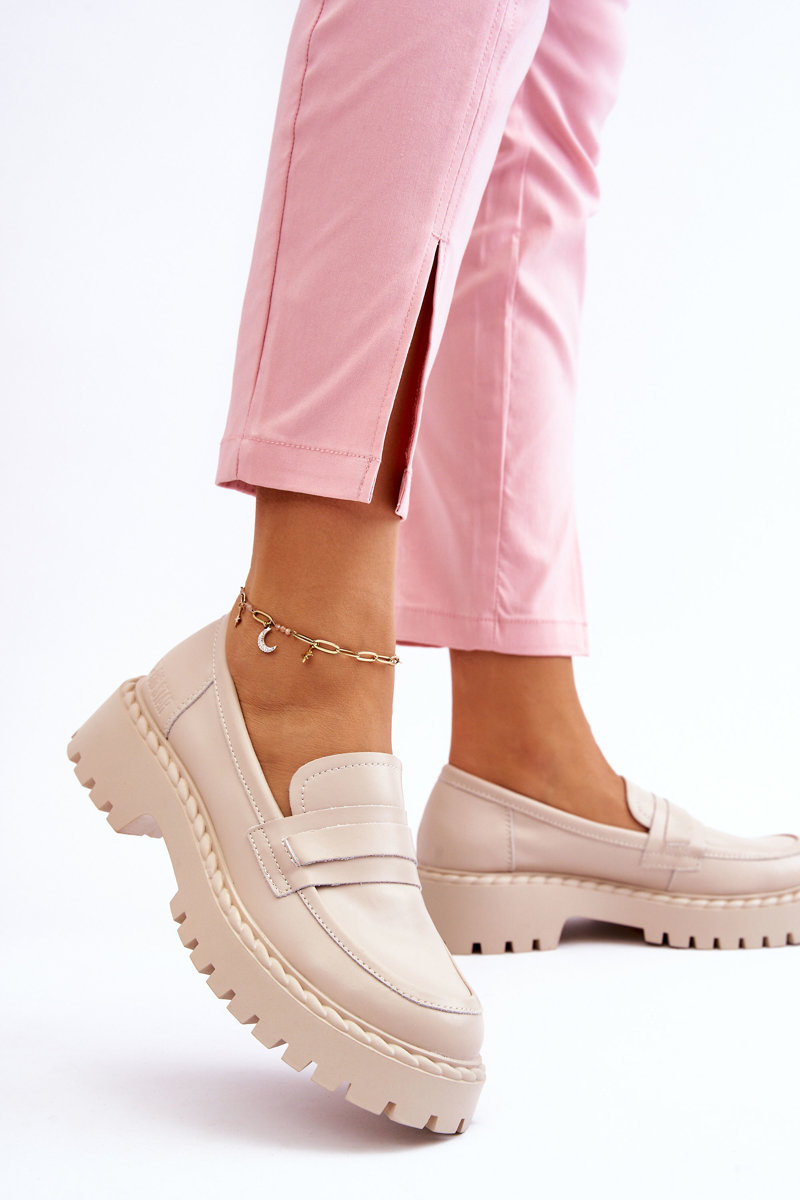 Women's Loafers Leather Shoes Big Star LL274457 Beige