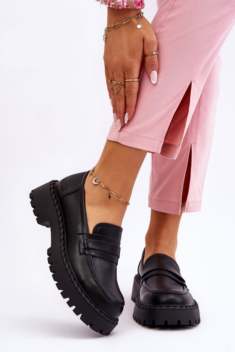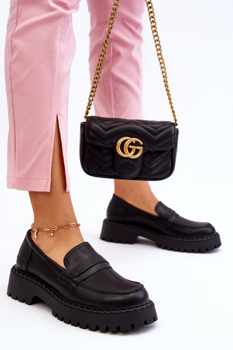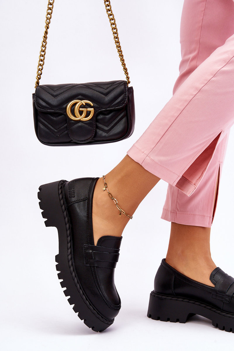 Women's Loafers Leather Shoes Big Star LL274458 Black