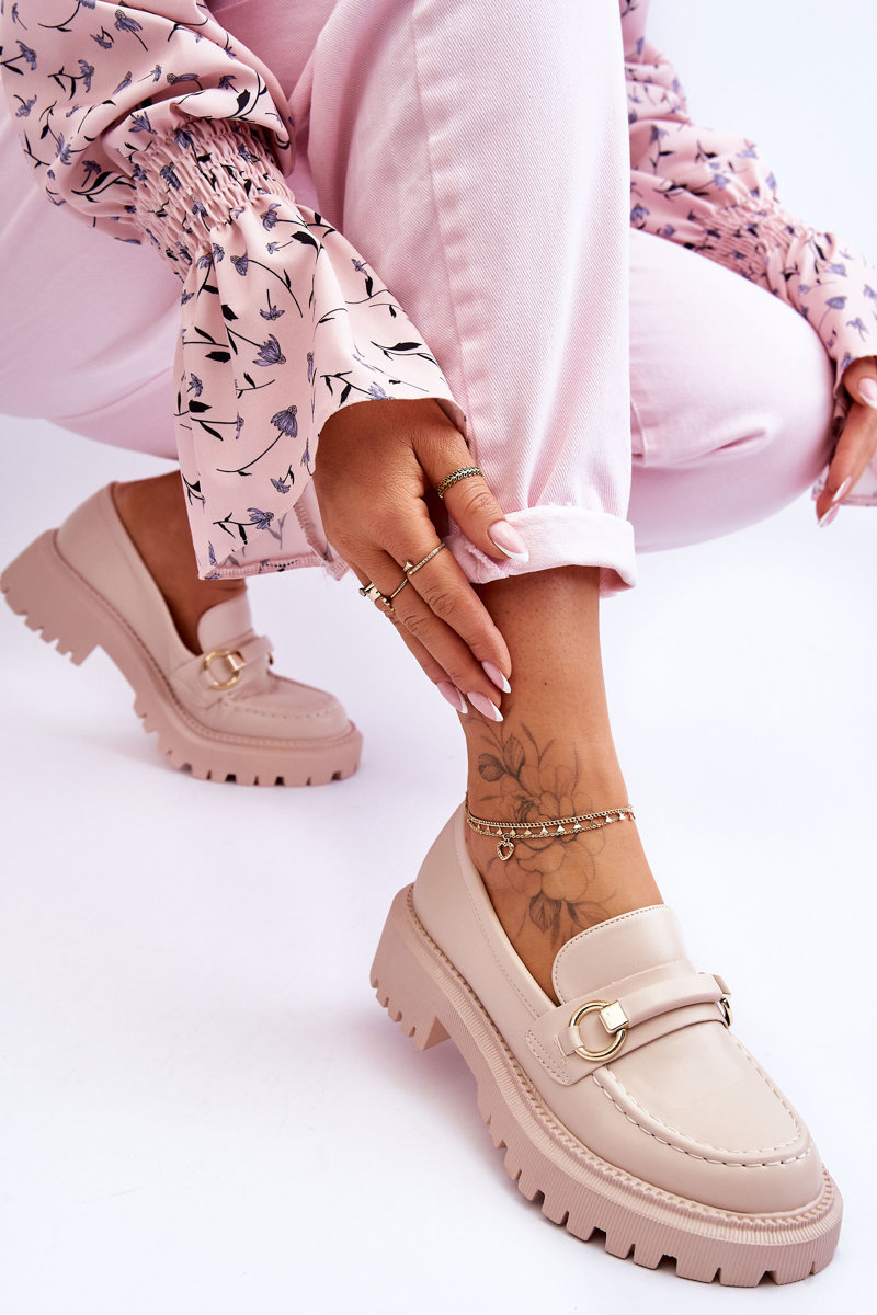 Women's moccasins set on a massive platform and flat heels will perfectly match many styles! This footwear is perfect for many seasons! Moccasins are made of eco leather. They have a slightly stiffened heel. There is an ornament on the belt. Moccasins also have an eco leather insole. When choosing a size, please refer to the size chart.