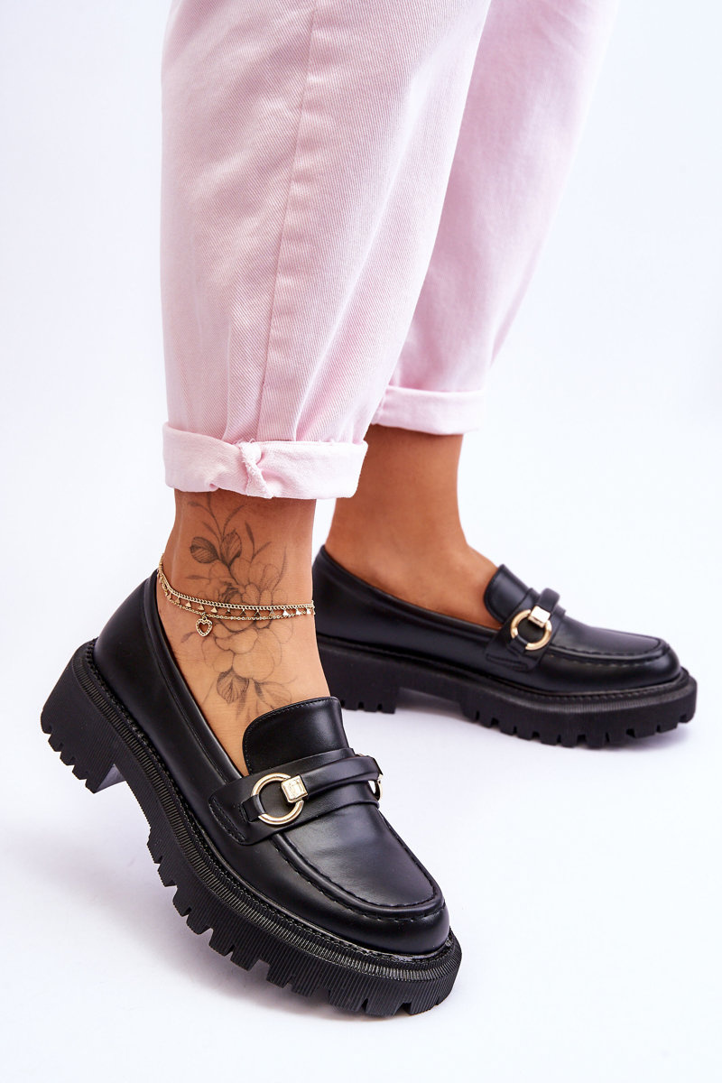 Women's moccasins set on a massive platform and flat heels will perfectly match many styles! This footwear is perfect for many seasons! Moccasins are made of eco leather. They have a slightly stiffened heel. There is an ornament on the belt. Moccasins also have an eco leather insole. When choosing a size, please refer to the size chart.