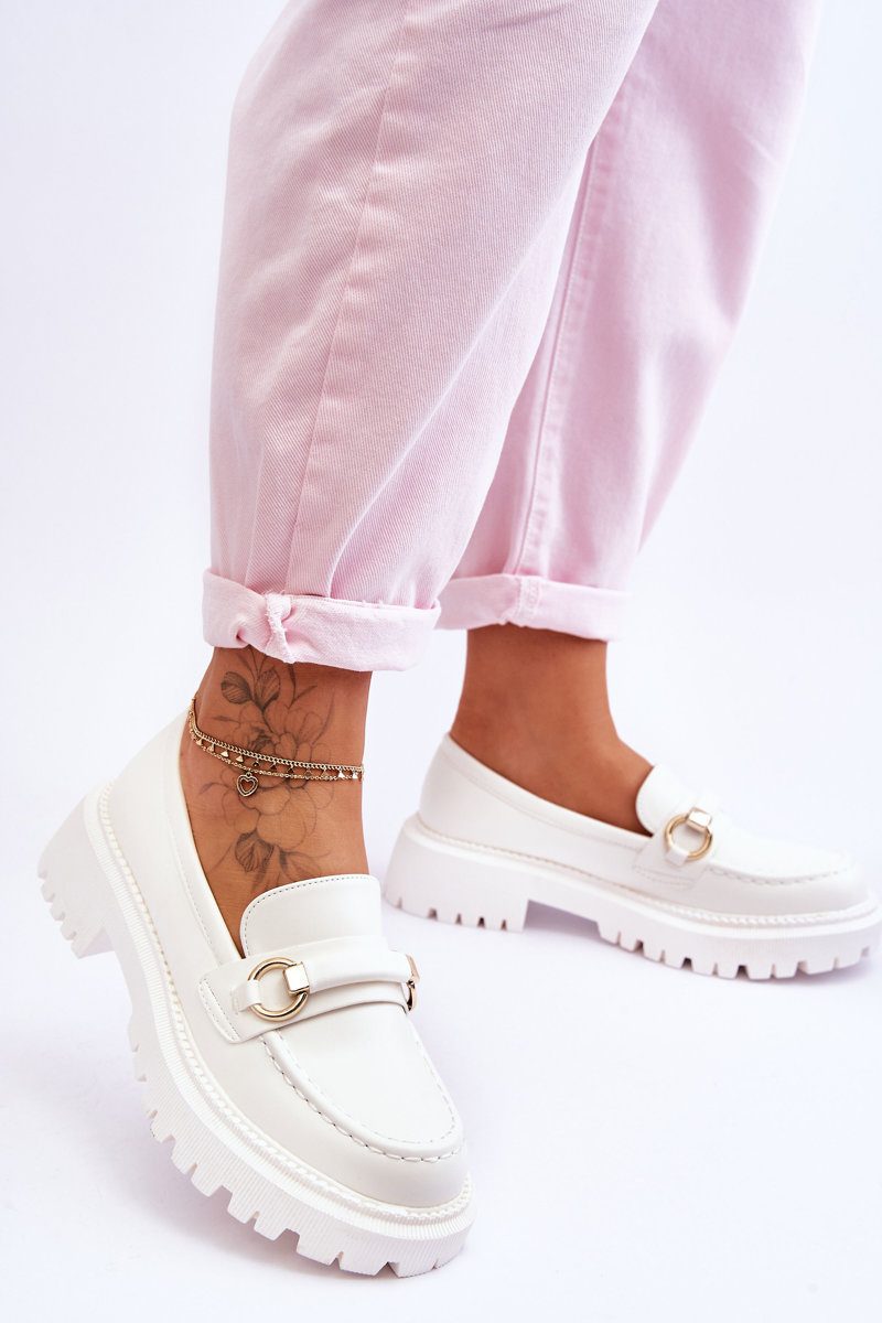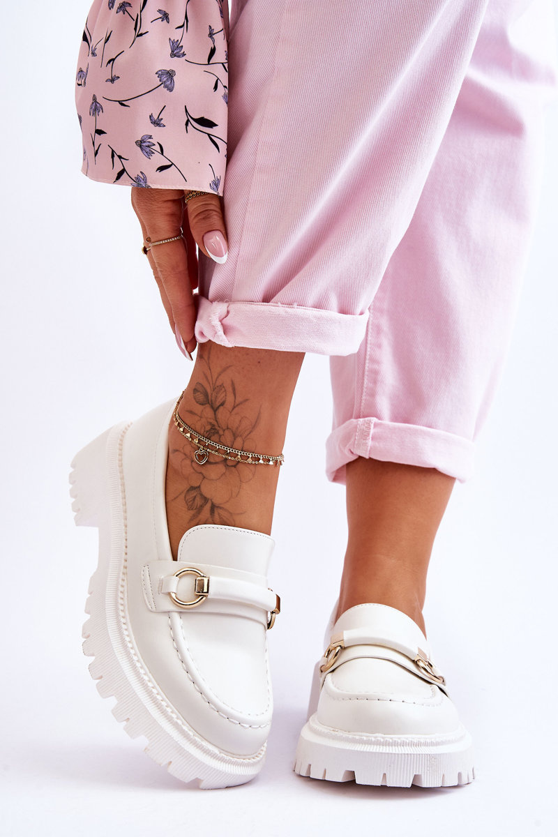 Women's moccasins set on a massive platform and flat heels will perfectly match many styles! This footwear is perfect for many seasons! Moccasins are made of eco leather. They have a slightly stiffened heel. There is an ornament on the belt. Moccasins also have an eco leather insole. When choosing a size, please refer to the size chart.