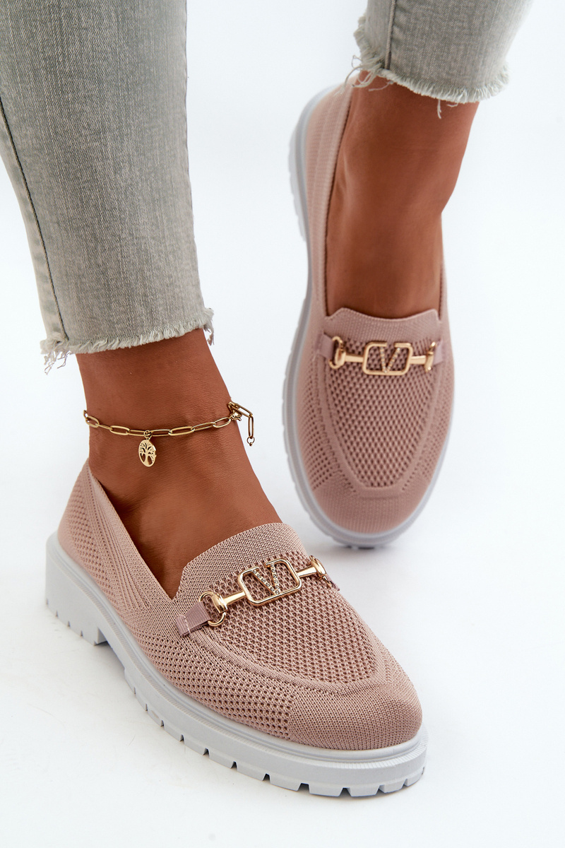 Women's Loafers On Flat Heel With Gold Detail Pink Limentia