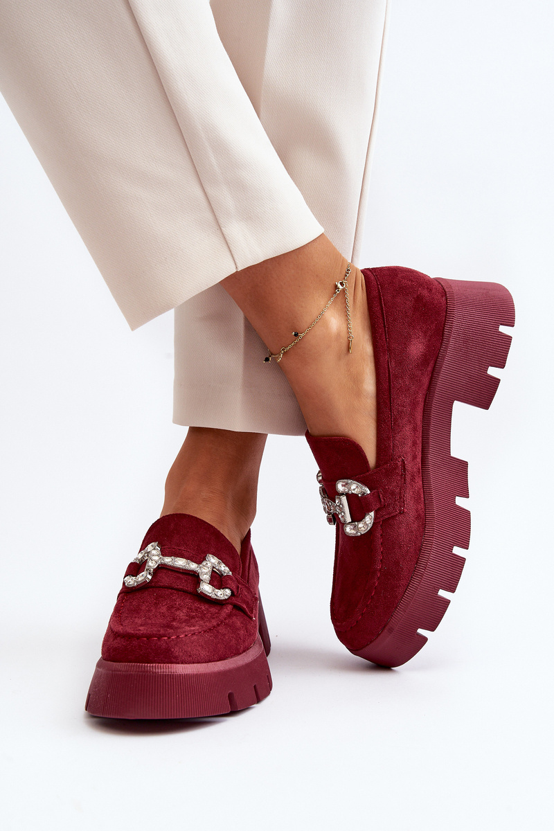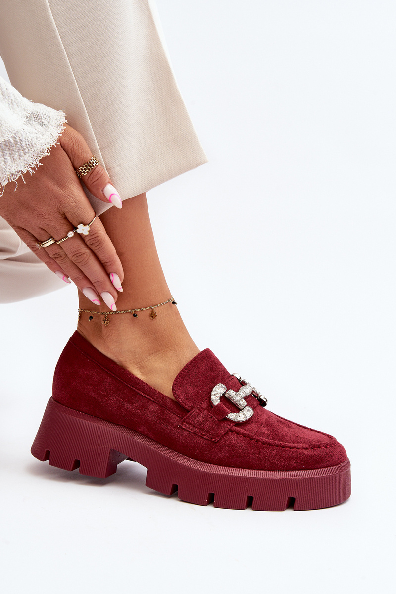 Stylish women's moccasins made of eco suede. They have a decoration and a strap at the front. This model is set on a massive, flat heel and platform. The moccasins have a soft eco leather insole. A great model for the spring-autumn season! You definitely should have them! When choosing a size, please refer to the size chart.