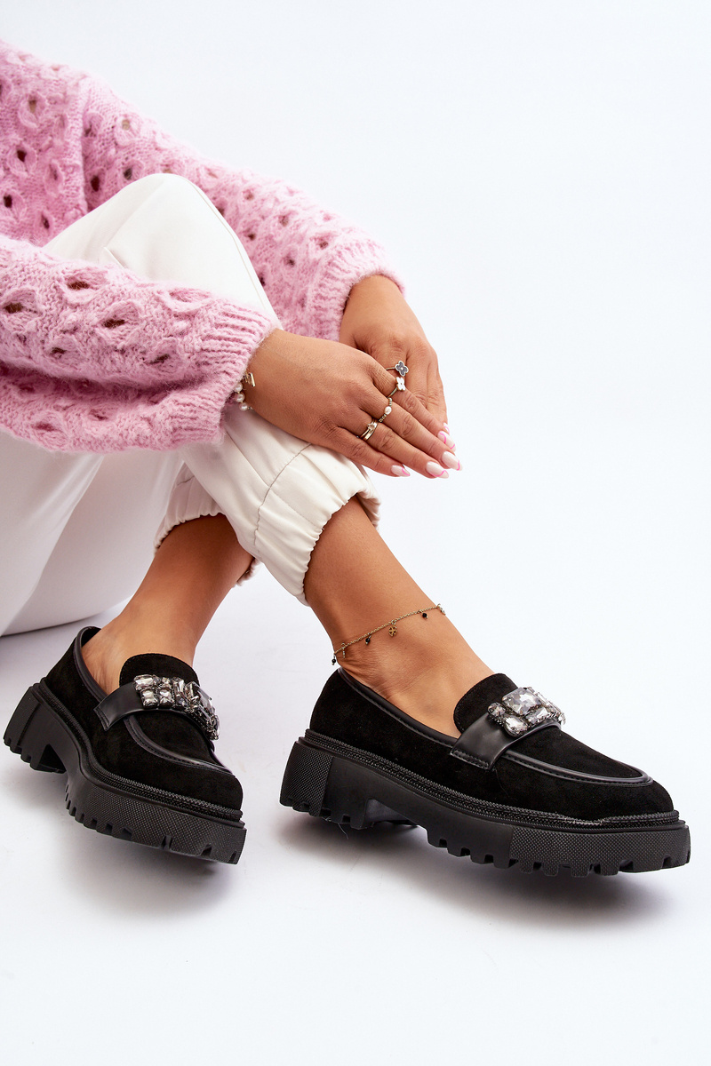 Women's moccasins made of eco-suede look exceptional. The decoration and strap on the front add subtlety and elegance to them. The massive platform and flat heel make them incredibly comfortable. This is the perfect model for spring-autumn days, which will perfectly complement various styles. Be sure to add these fashionable moccasins to your collection to emphasize your unique style! When choosing a size, please refer to the size chart.