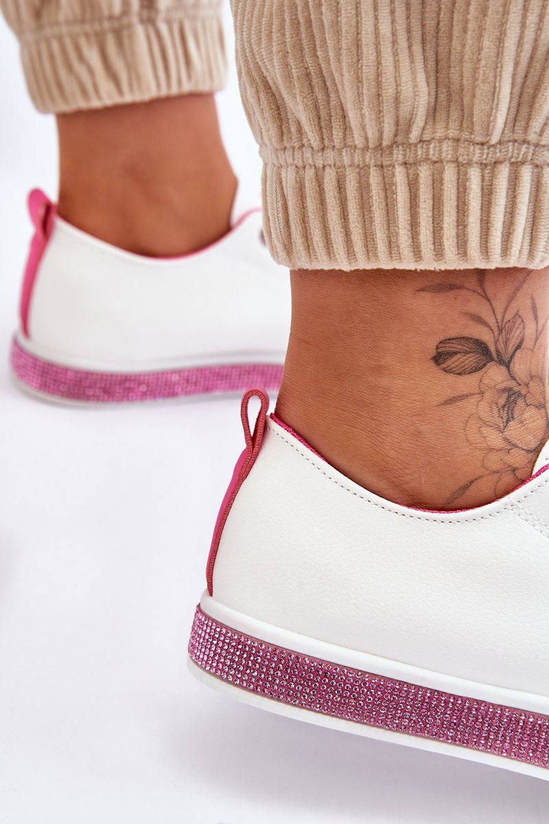 Low sneakers are a timeless model, so you should have them in your wardrobe! You can create many interesting styles with them. They fit both jeans and airy dresses. Made of eco leather with fashionable decorations on the platform in the form of rhinestones imitating rhinestones. They have a soft insert that can be removed. When choosing a size, please refer to the size chart.