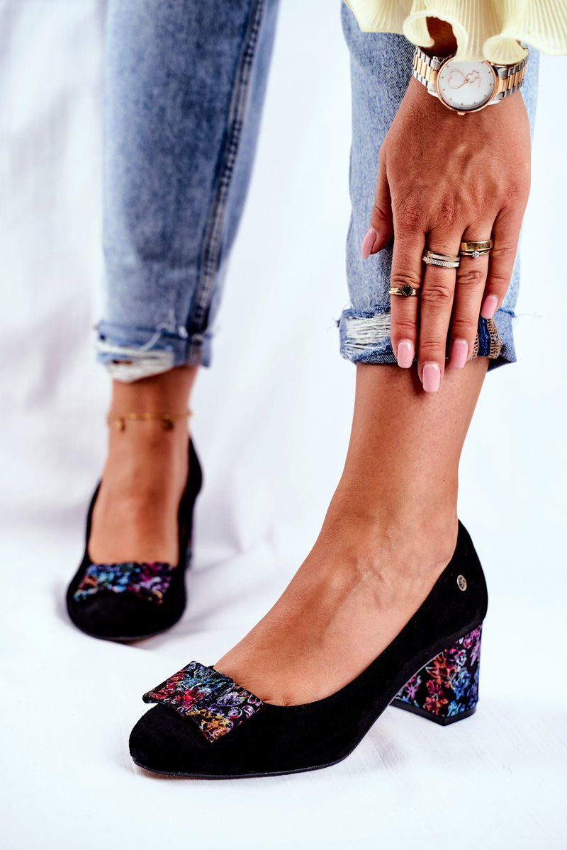 Beautiful, eye-catching pumps on a delicate post. The pumps are made entirely of natural suede leather. Fashionable floral decorations on the heel and on the bow. The insole is natural leather, thanks to which you will feel comfort at every step. The pumps of the Maciejka brand are a 100% Polish product, hand-made with attention to every detail. When choosing the size, please suggest the size table, which is available after hovering over or clicking on a given size.