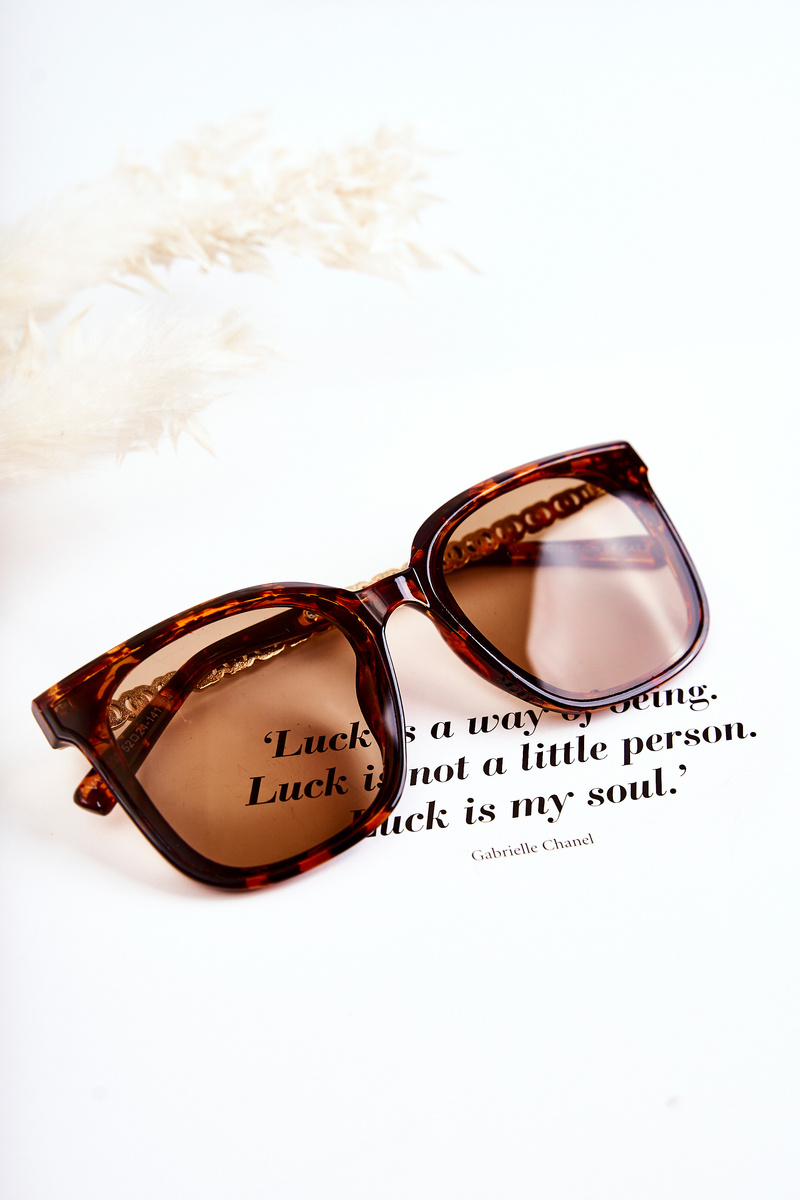 Unique and stylish sunglasses will be perfect for many situations! Not only in the summer season, but also in the winter season, when the sun's rays reflect off the snow. This model was made of plastic. A golden ornament in the form of interwoven circles decorates the temples. Manufacturer's information: glasses absorb harmful UV rays, category 2.