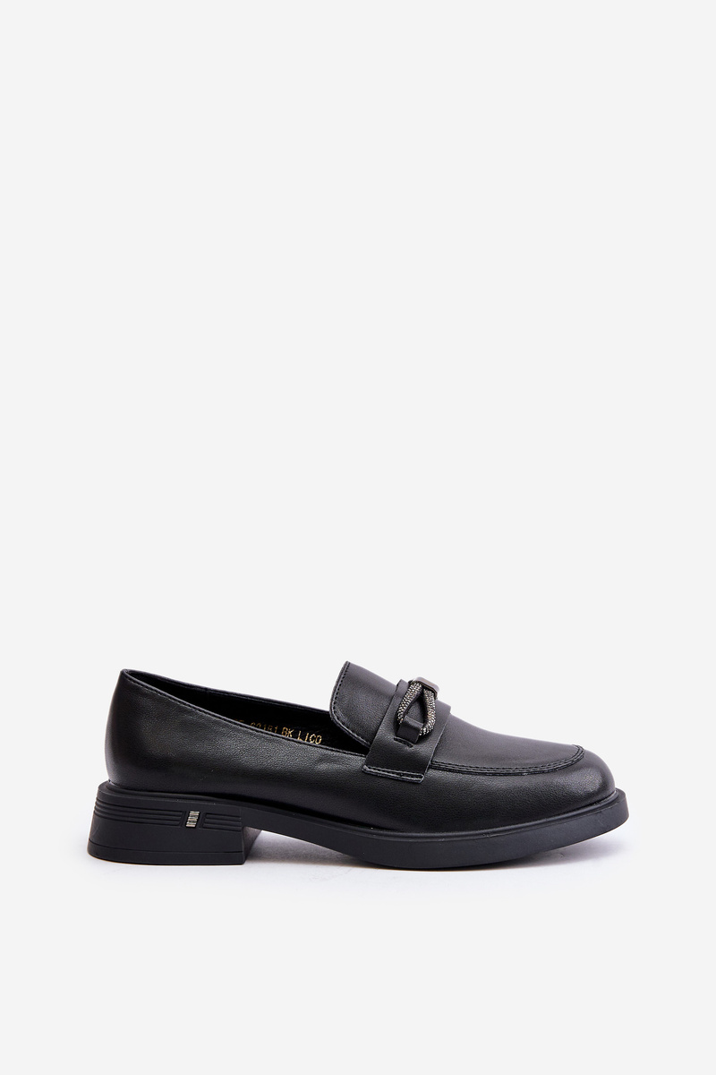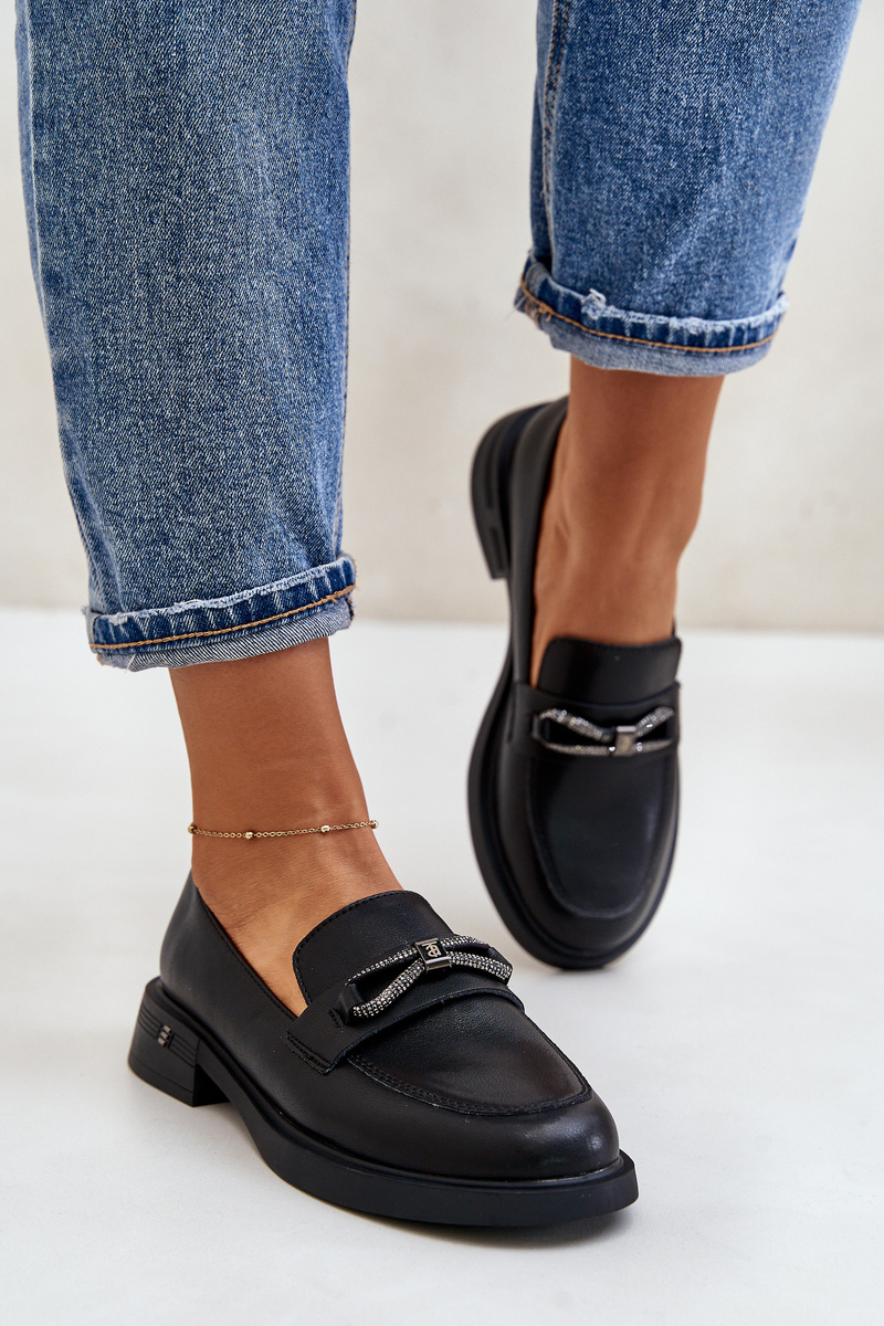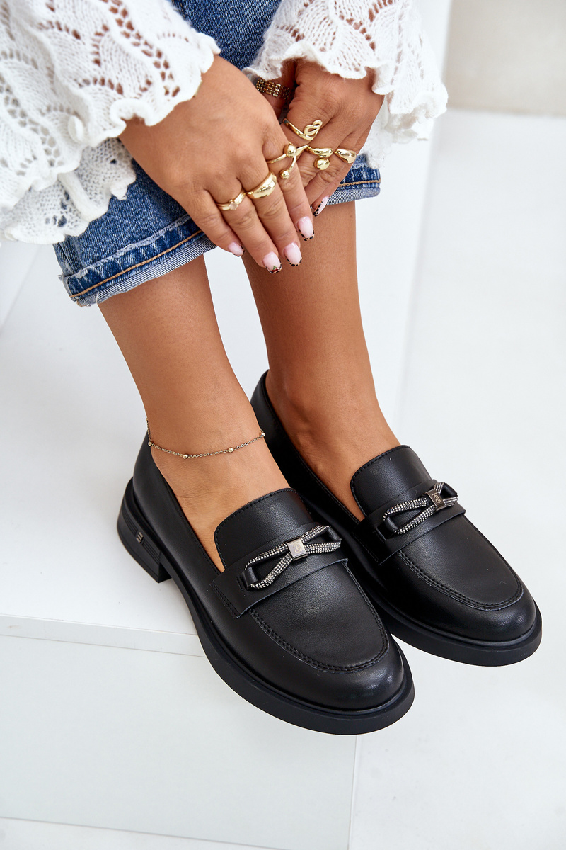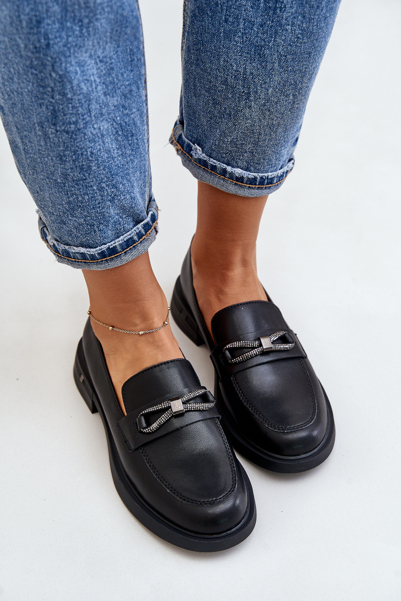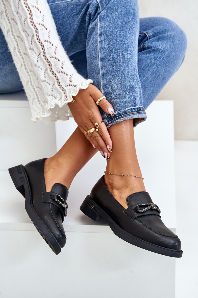 Women's loafers are made of high-quality eco leather. They have a belt with a circle-shaped decoration and the letter V at the front. Moccasins are set on a platform with a low wedge. The soft insole made of natural leather will ensure comfort during use. When choosing a size, please refer to the size chart.