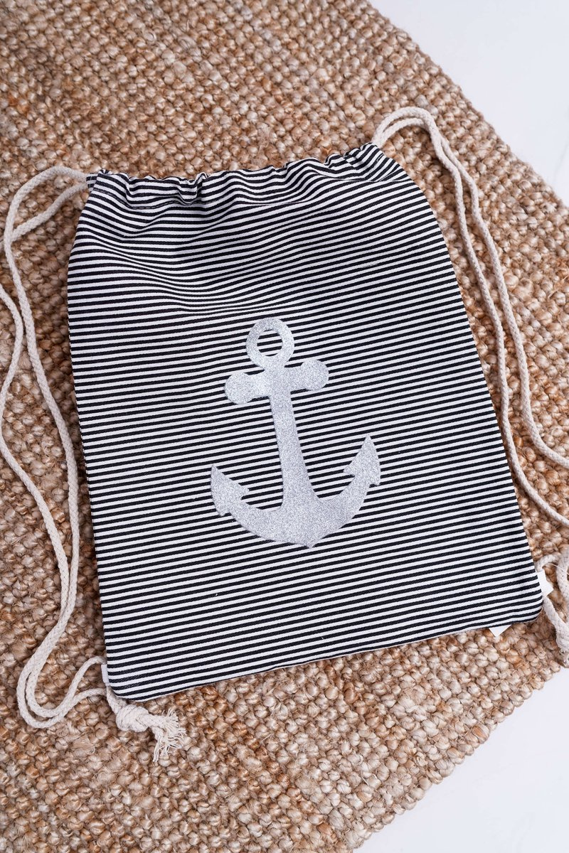 Beach bag perfectly suited for the summer season. You can fit all your necessities in it and surprise with your styles! Adjustable drawstring straps. Brocade decoration in the form of an anchor.