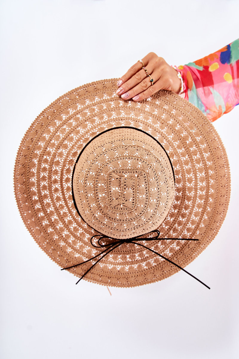 Women's hat with a decorative openwork. It has a leather strap with a bow. The hat is made of 46% cotton, 44% polyester and 10% viscose. The product has a string, which allows for adjustment. Be sure to check out our entire collection of hats!