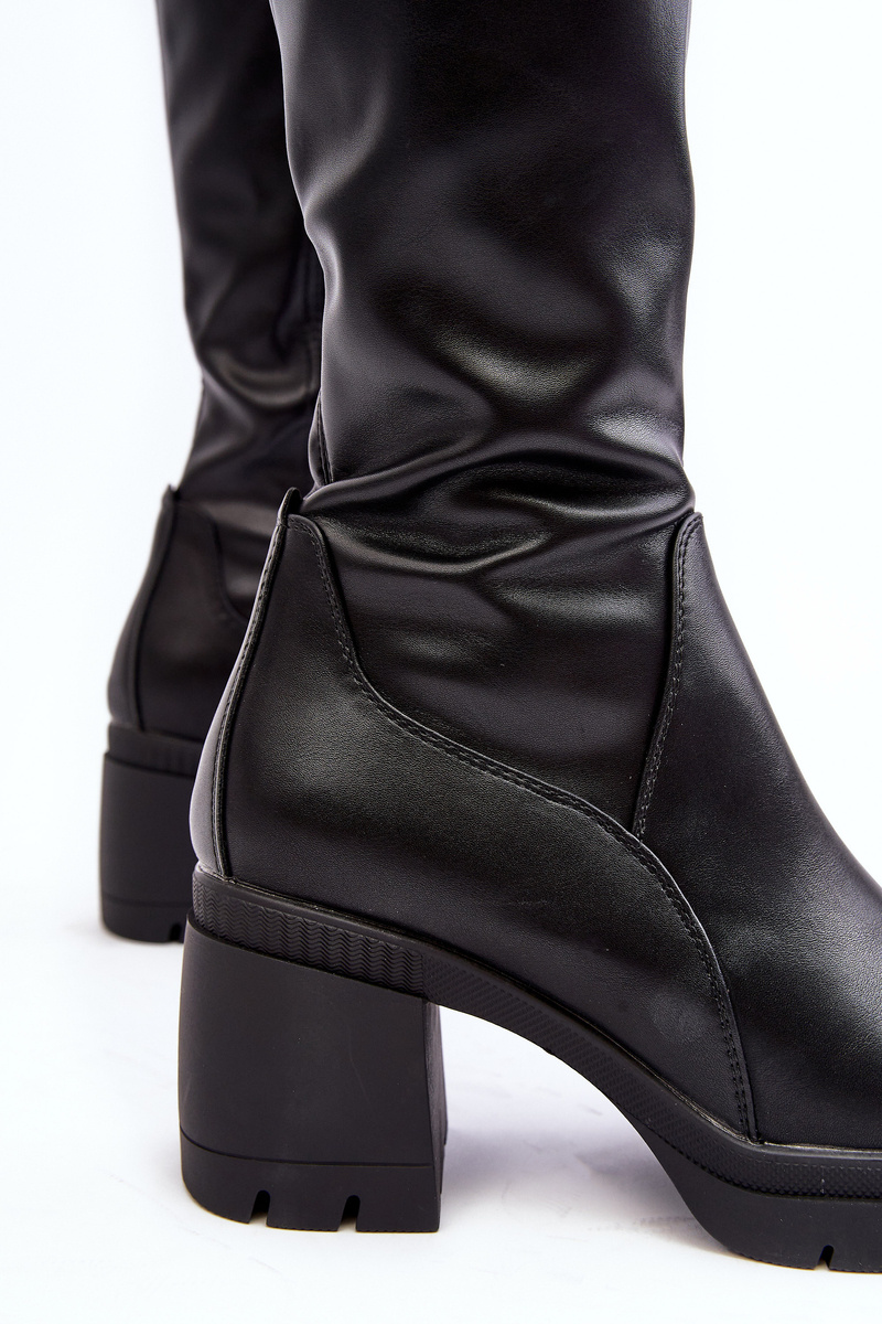 Women's Over-the-Knee Boots with Heels and Fleece Lining Black Sislene