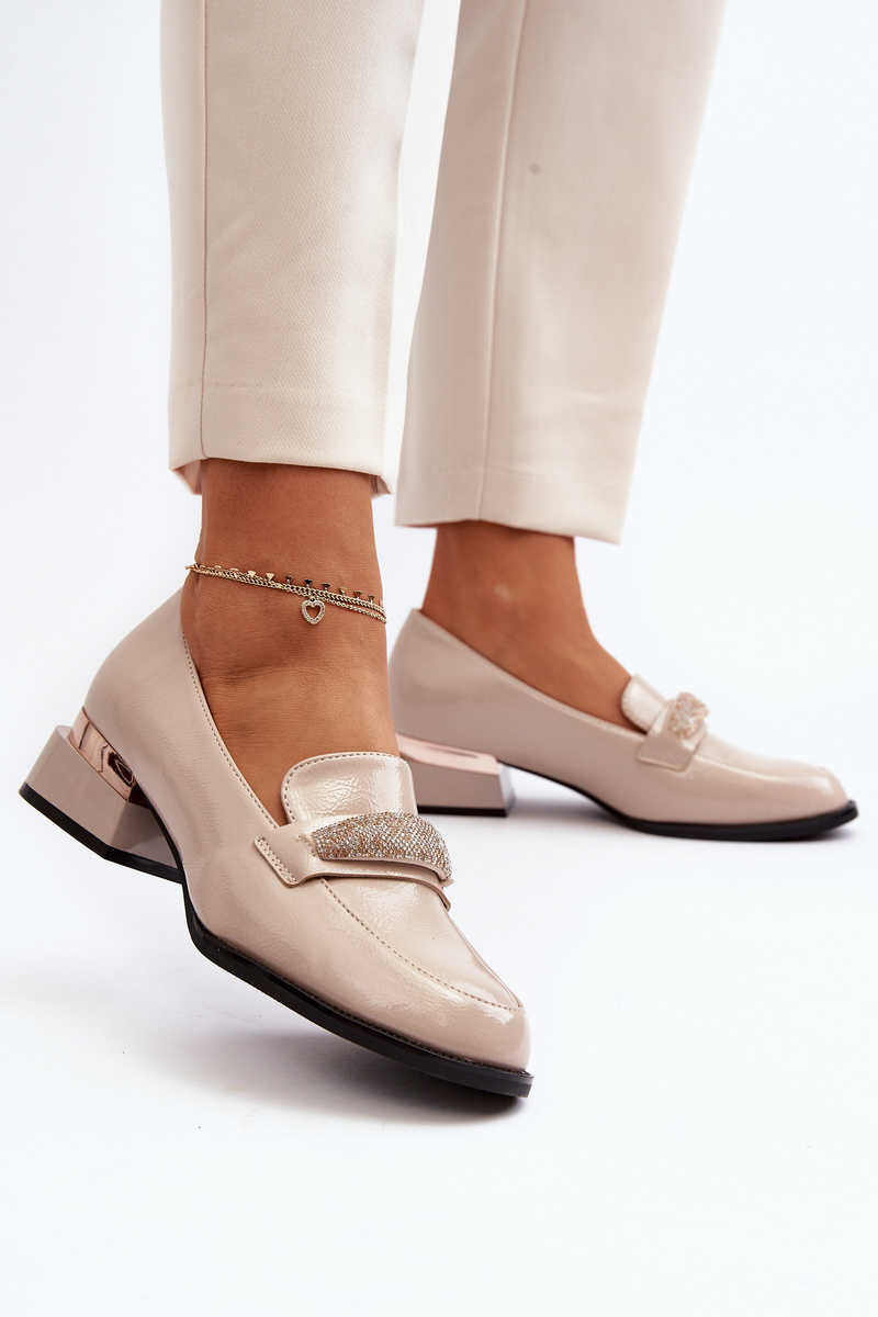 Women's Patent Leather Low Heel Shoes Beige Marilni