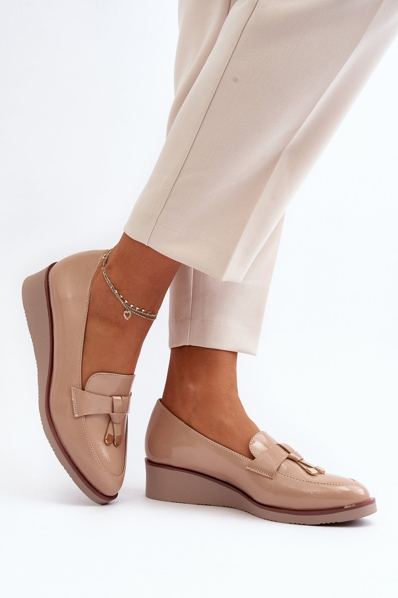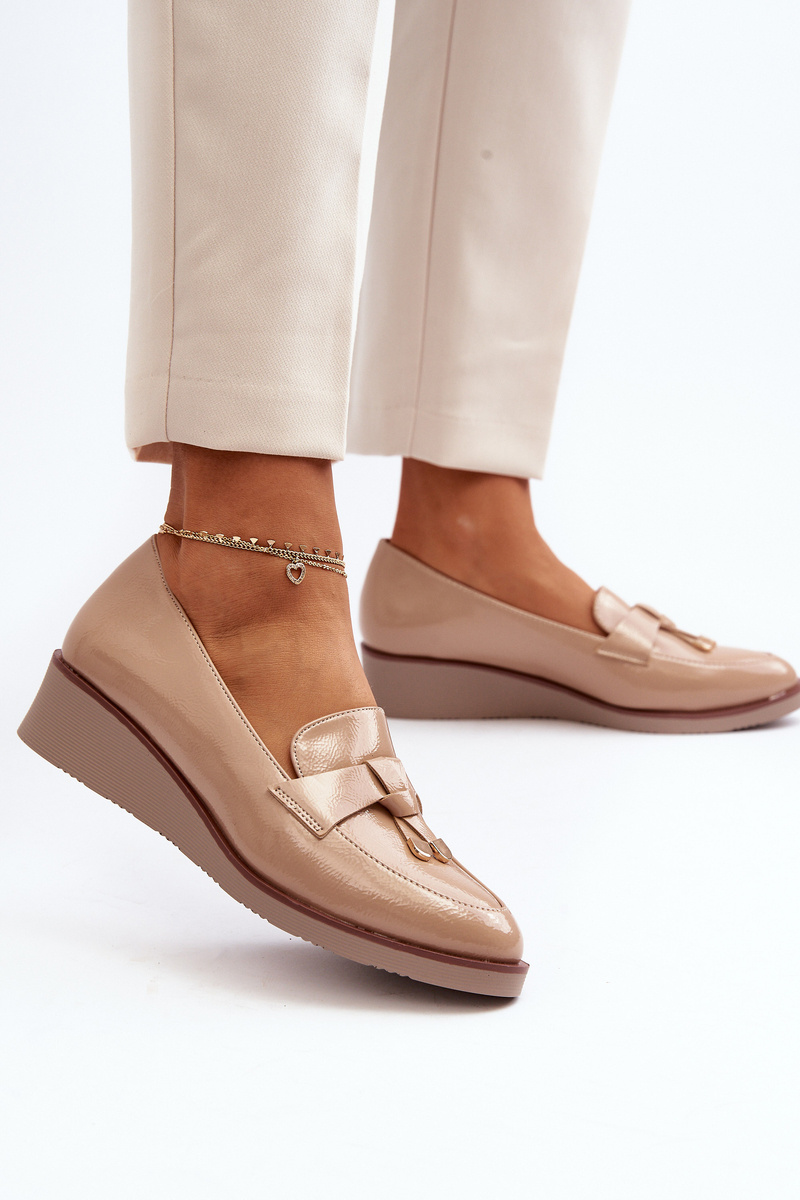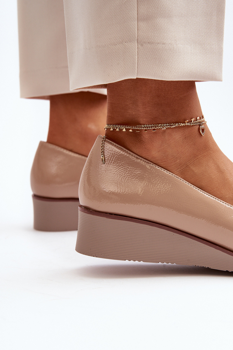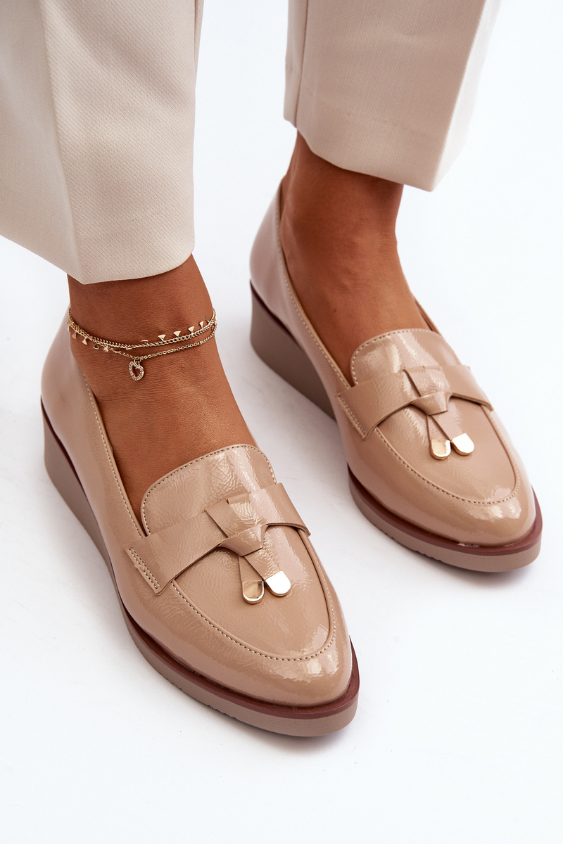 Women's Patent Leather Wedge Shoes with Ornament Black Miliret