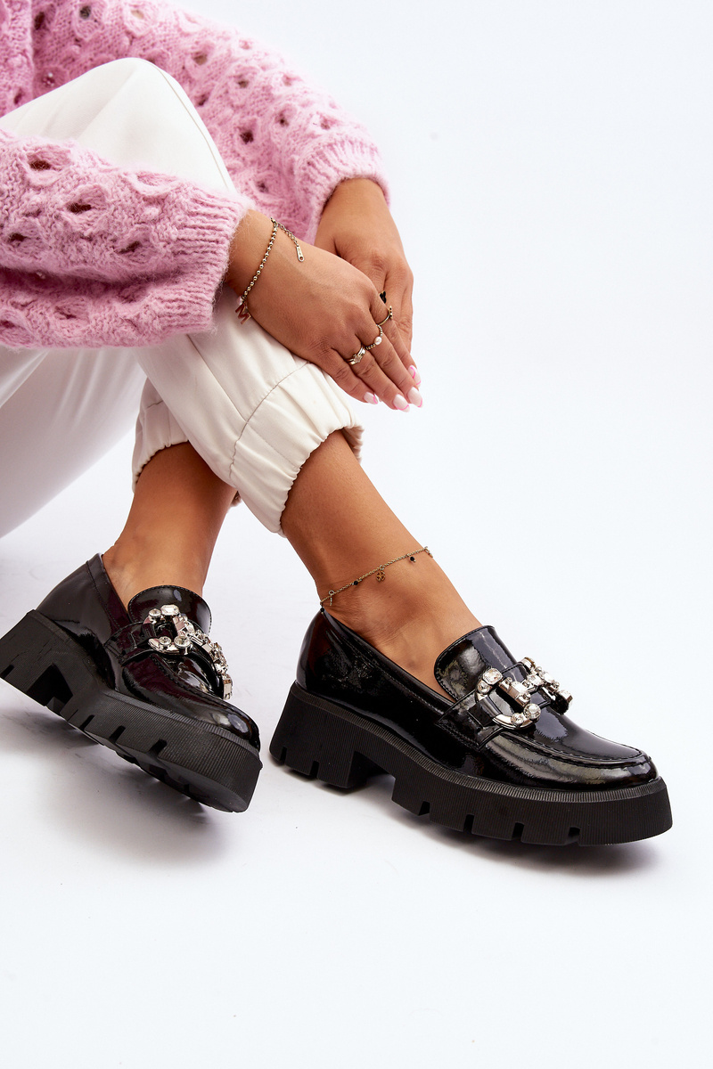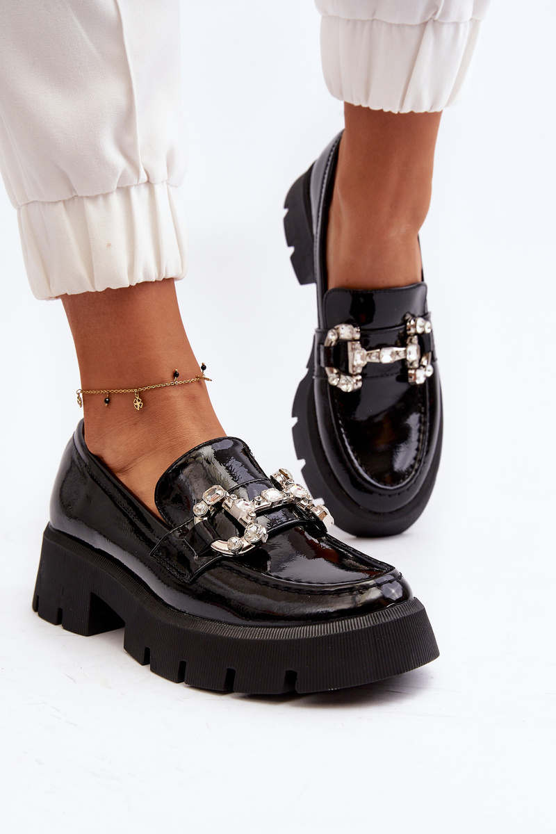 Women's Patent Loafers with Decoration Black Arsaba