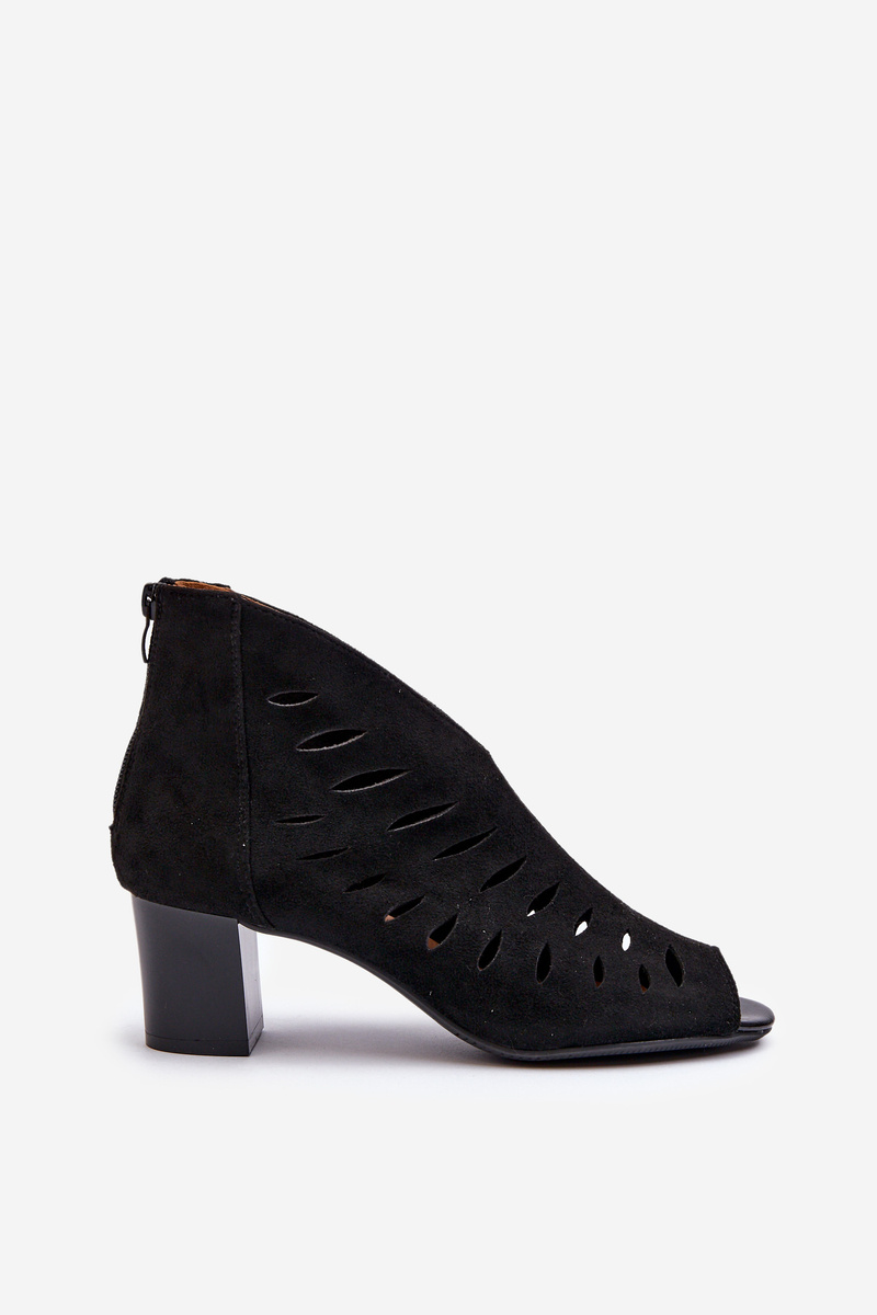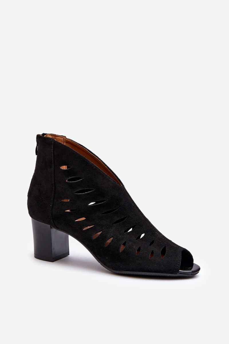 Women's Perforated Eco Suede Ankle Boots with Open Toe Black Timalre