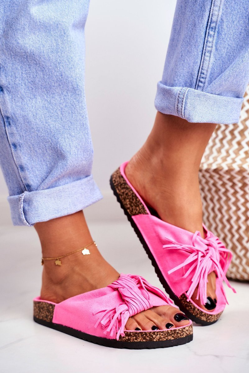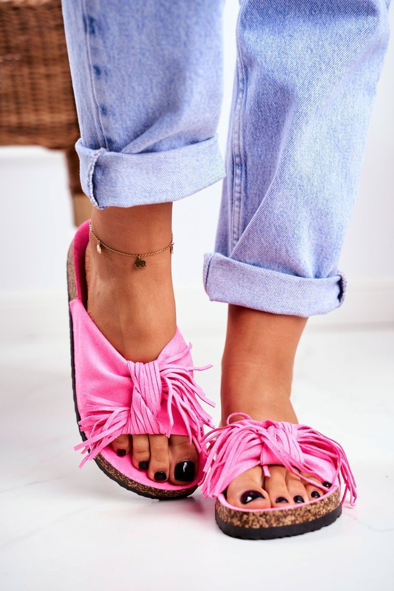 Women's flip flops perfect for summer! They will fit both dresses and trousers. The soft and profiled insole provides incredible convenience and comfort. The flip-flops have beautiful decoration in the form of a tied bow with hanging fringes. They come in several wonderful colors. You must have them, check all the colors!