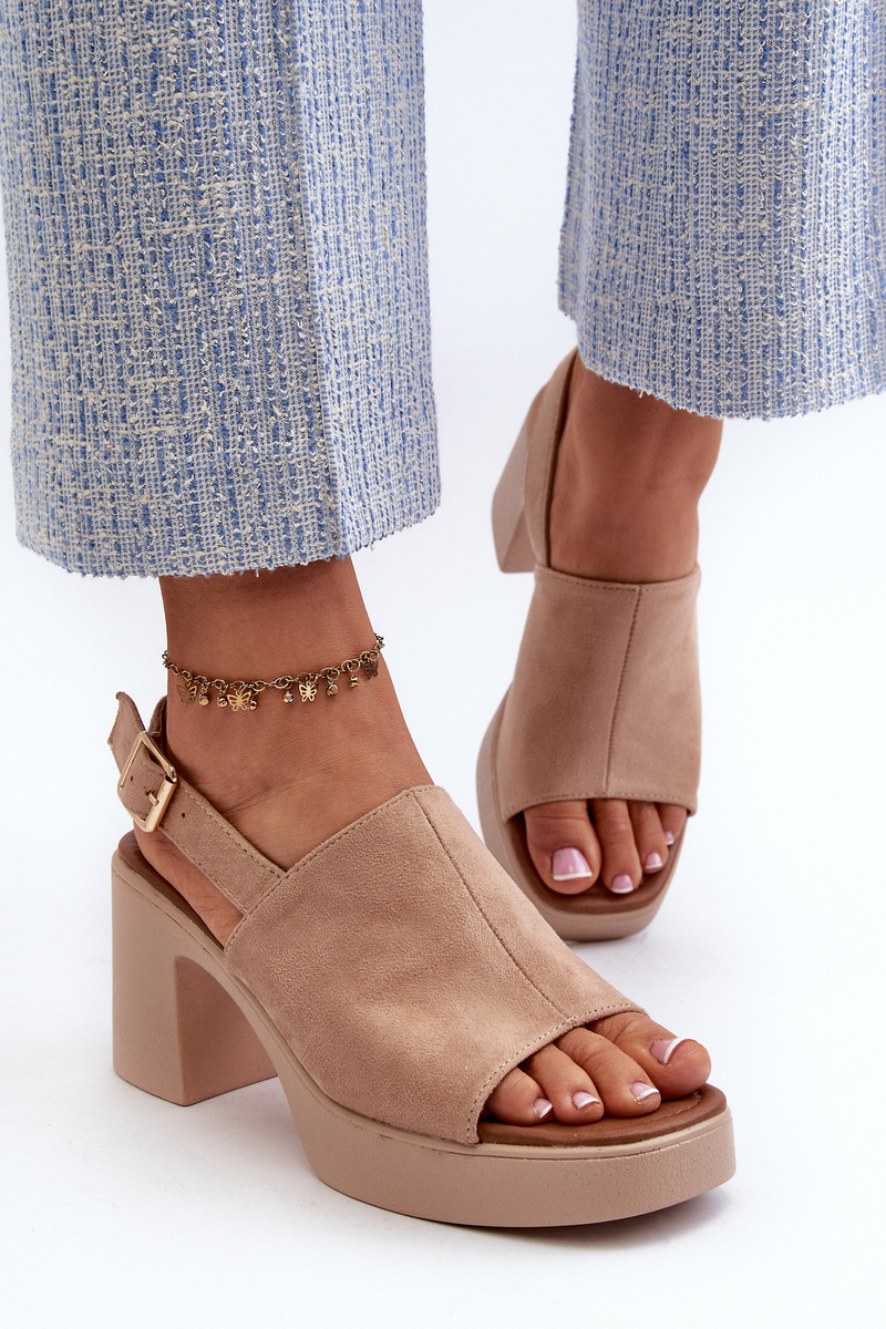 Women's Platform and Heeled Sandals in Beige Eco Suede Vatle