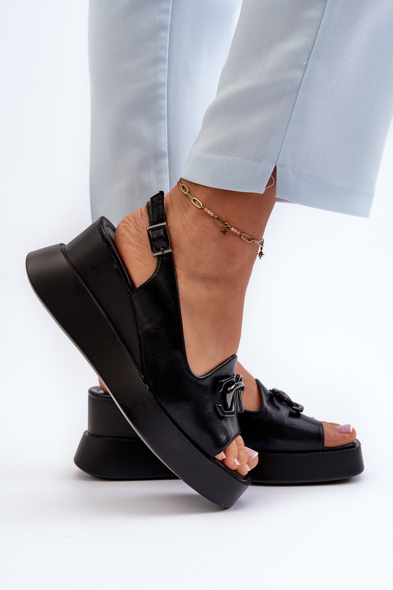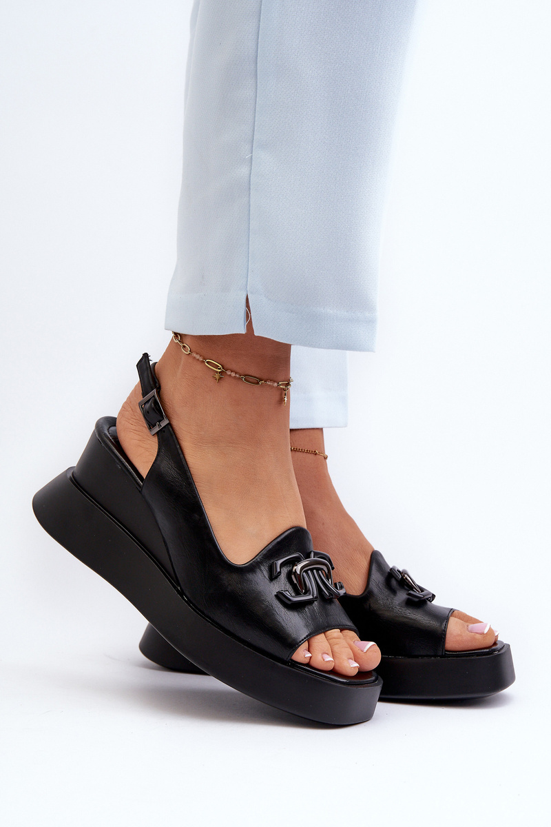 Women's Platform and Wedge Sandals with Black Embellishment Janesca