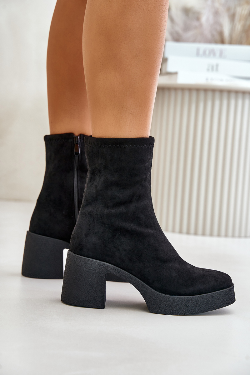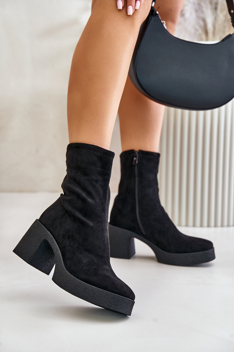 Women's ankle boots made of eco leather. Set on a chunky block heel and platform. Rounded toes. Zip closure. Soft insole ensures comfortable wear. Perfect for styling with dresses and skirts. When choosing a size, please refer to the size chart.