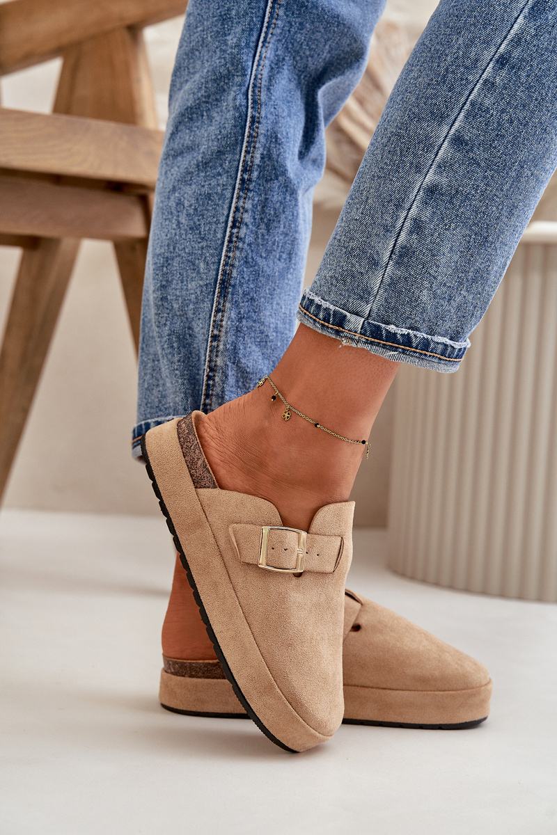 Women's Platform Clogs With Gold Buckle Dark Beige Terilaina