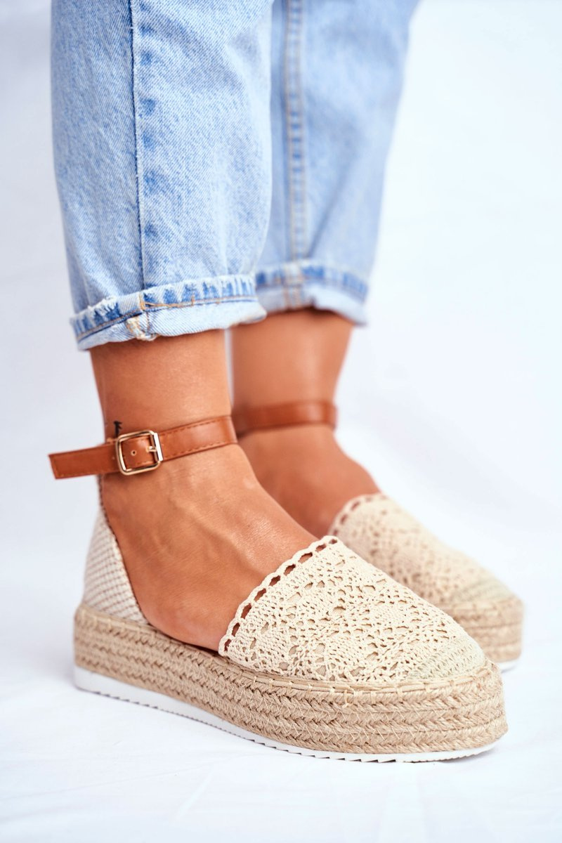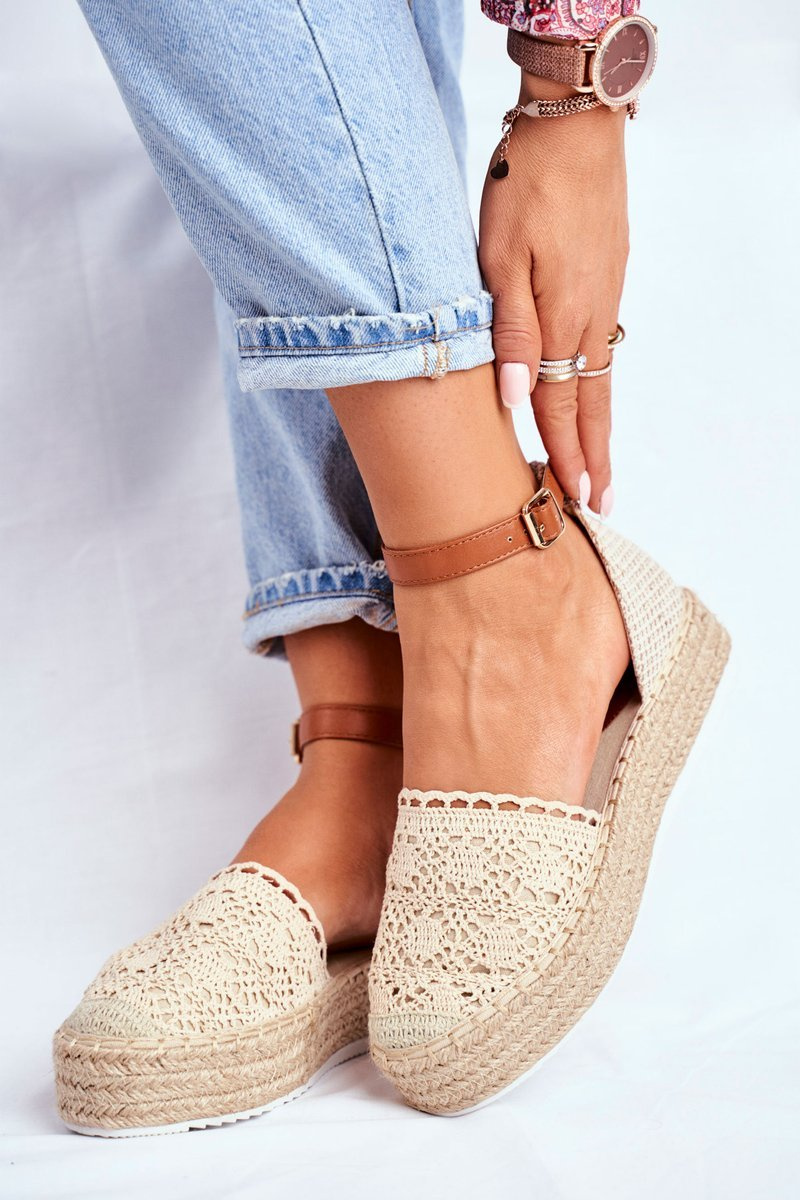 Feel the call of summer and choose these wonderful espadrilles. The high platform combined with the decoration in the form of a string around the sole is an undoubted hit! A built-in heel counter and fastening around the ankle. And that's not all! The nose has been beautifully finished with lace material, which gives them a truly summer style. Fall in love with espadrilles on a thick sole. When choosing the size, please suggest the size chart.