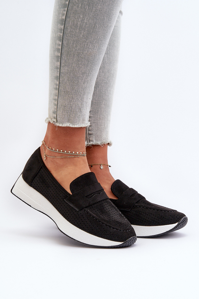 Women's Platform Loafers in Black Eco Suede Inesqua