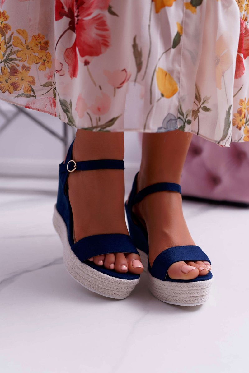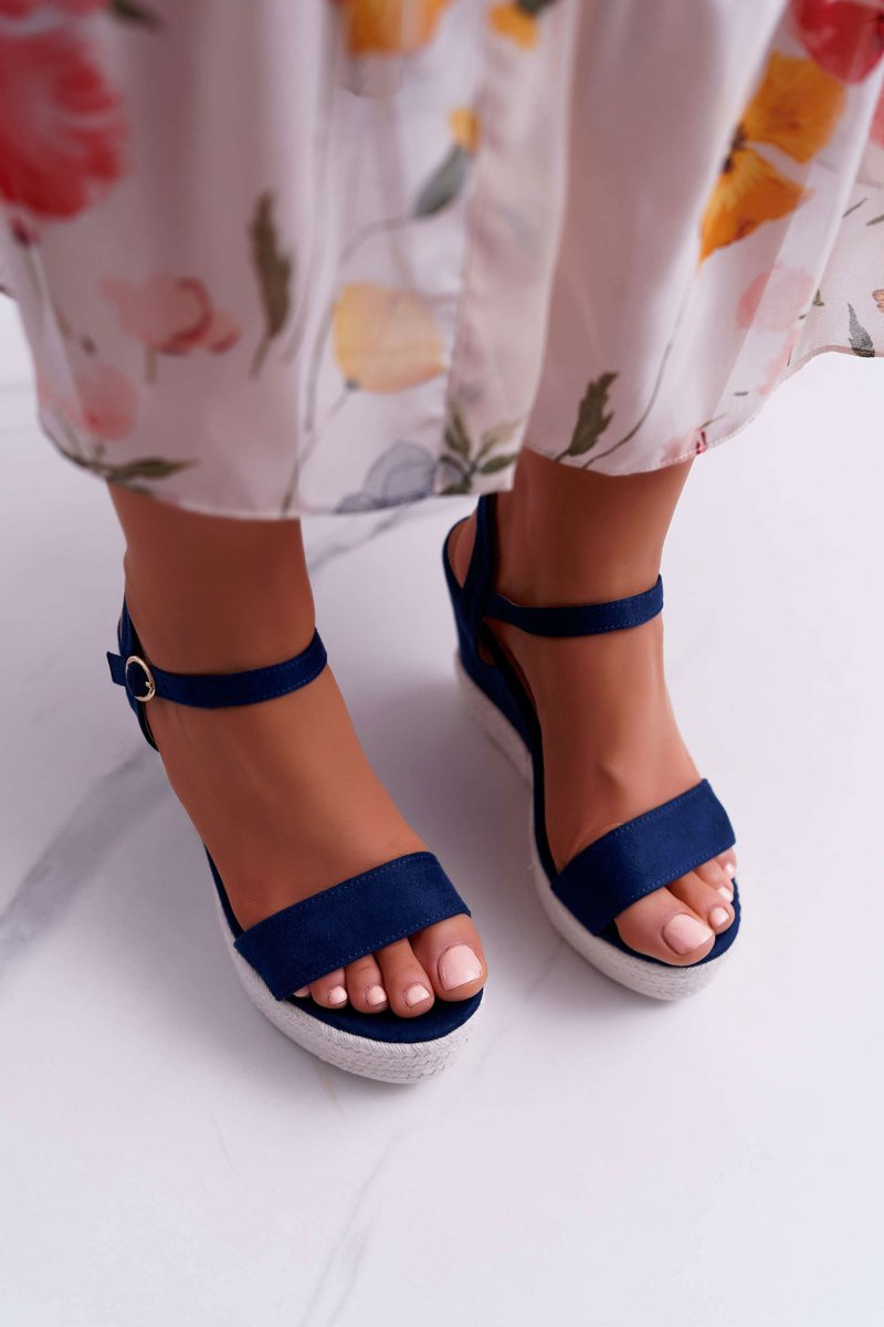 Women's Platform Platform Sandals Linen Navy Blue Liviana