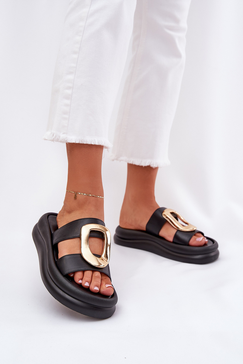 Women's Platform Sandals With Gold Detail Black Ularinea