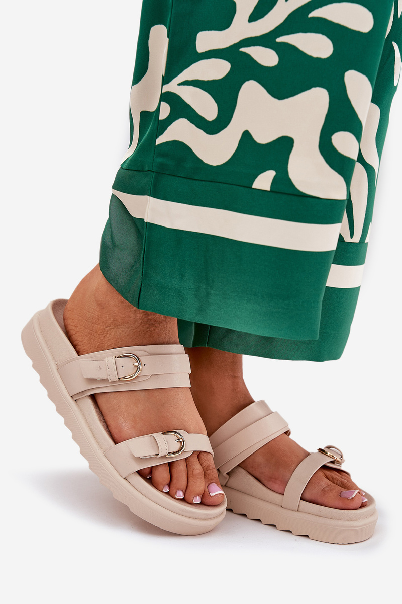 Women's Platform Sandals With Golden Buckles Beige Wernone