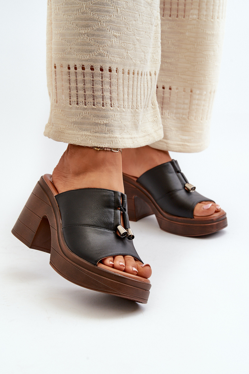 Women's Platform Slide Sandals with Chunky Heel Black Dafira