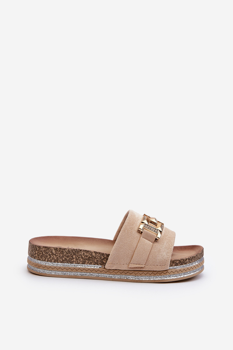 Women's Platform Slides with Decoration Beige Vapireta