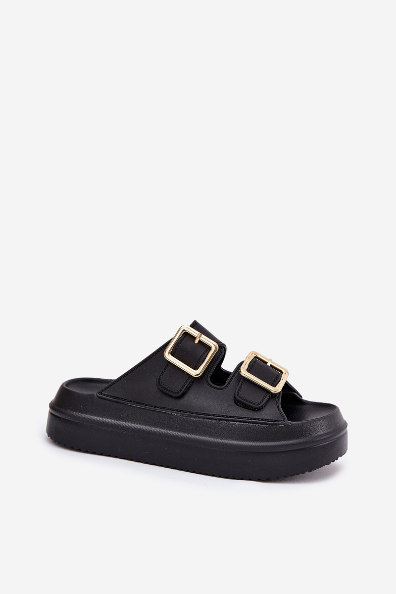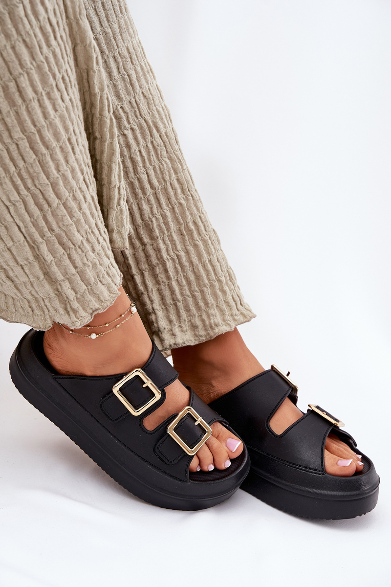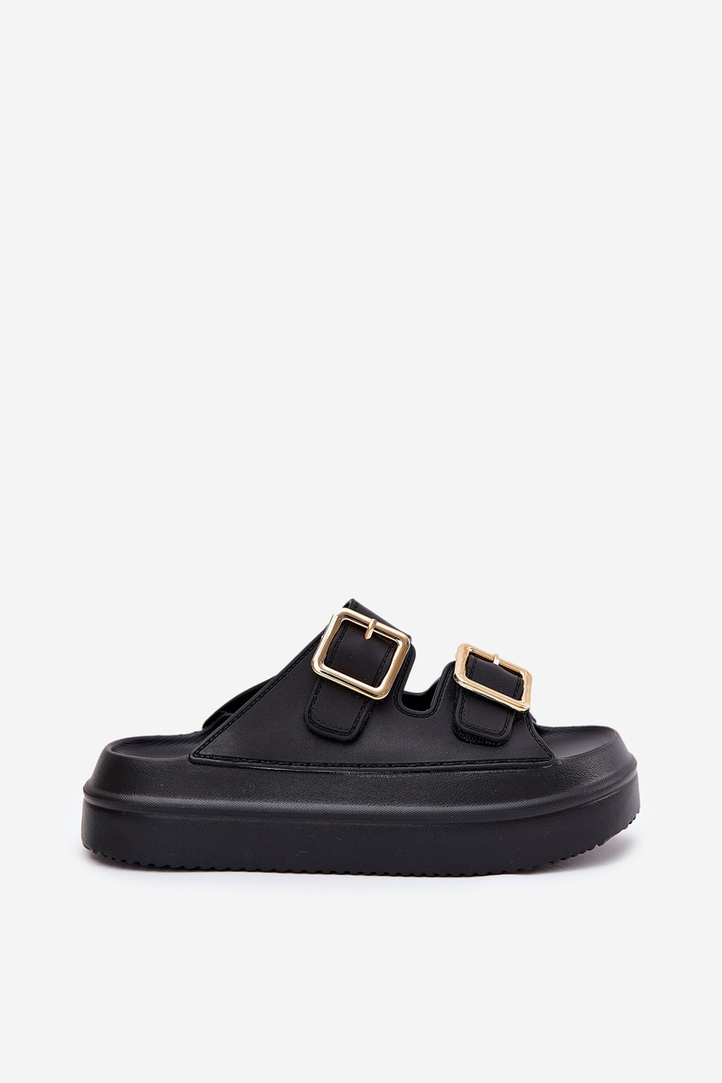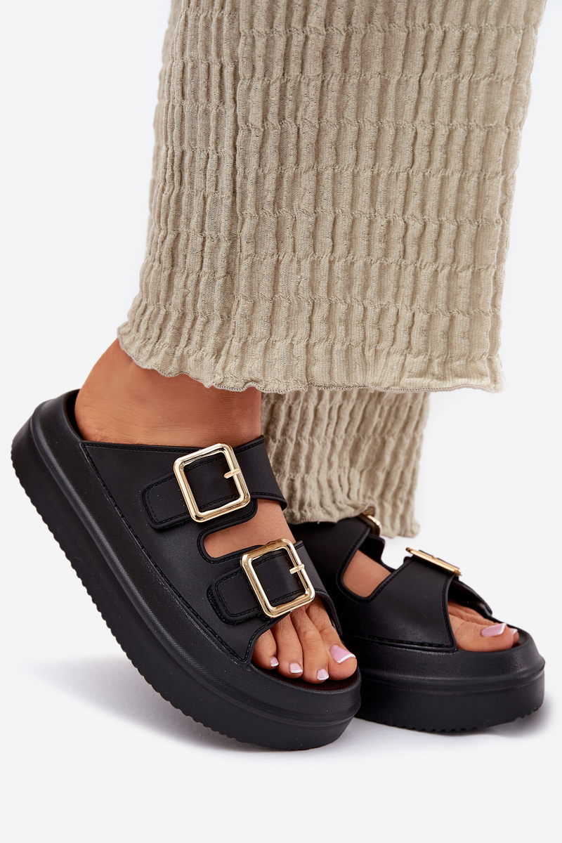 Women's Platform Slippers With Golden Buckles Black Zorila