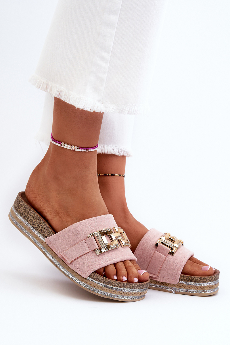 Women's Platform Slippers with Pink Ornament Vapireta