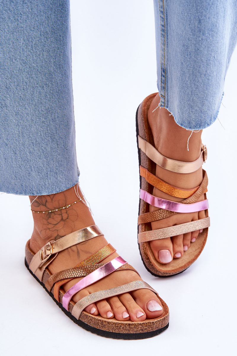 The perfect summer flip flops you should have! They are made of eco leather. In addition, one of the straps is adjustable and fastened with a buckle. These slip-on flip-flops have a profiled, eco-suede insert. They were set on a massive platform. When choosing a size, please refer to the size chart.