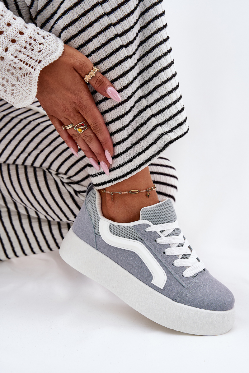 Women's sneakers made of eco suede are an excellent choice for everyday wear, combining style and comfort. Set on a platform, they provide comfort and additional stability. The rounded toes guarantee freedom of movement, while the soft insole covered with material ensures comfort throughout the day. The classic design of these sneakers makes them perfect for everyday outfits, offering both functionality and a fashionable look. When choosing a size, please refer to the size chart.