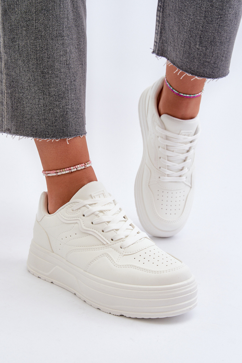 Women's sneakers made of eco leather. Their characteristic feature is a higher sole, which gives them a unique look and additional height. These classic sneakers provide not only a fashionable appearance, but also comfort and support for the feet during daily activities. They will work perfectly in various stylings, adding a touch of originality and freshness to them.