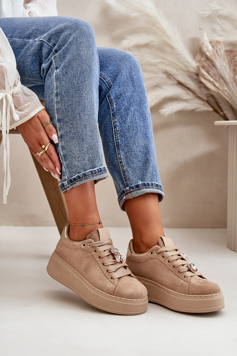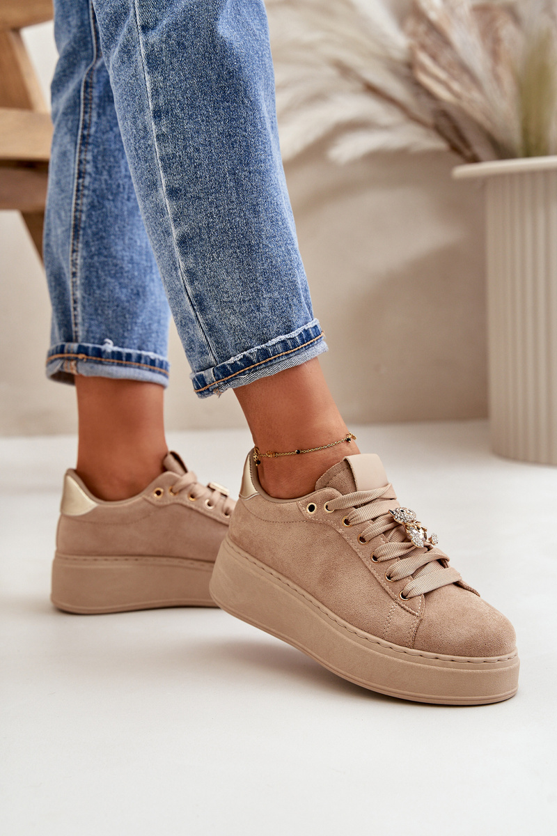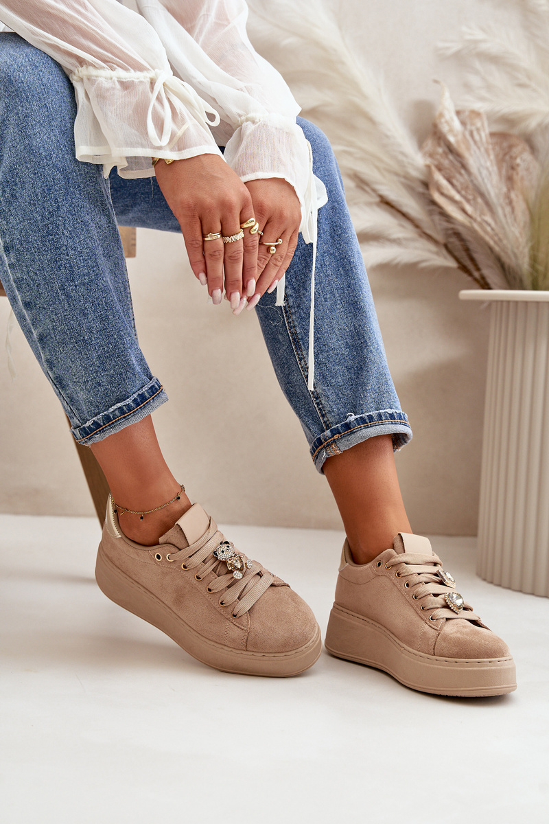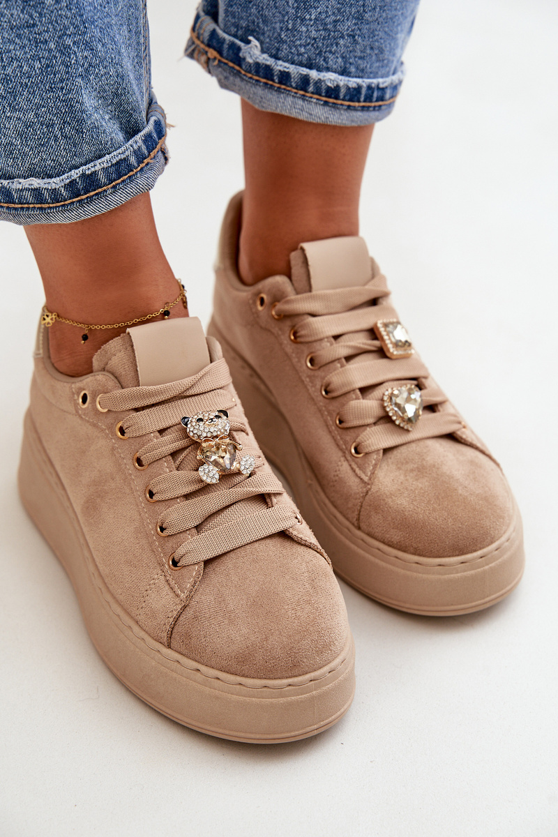 Women's sneakers made of eco leather that combine style and comfort. Set on a platform, they provide comfort all day long, and an additional bear-shaped pin adds original charm. Perfect for women who want to combine a fashionable look with functionality! When choosing a size, please refer to the size chart.