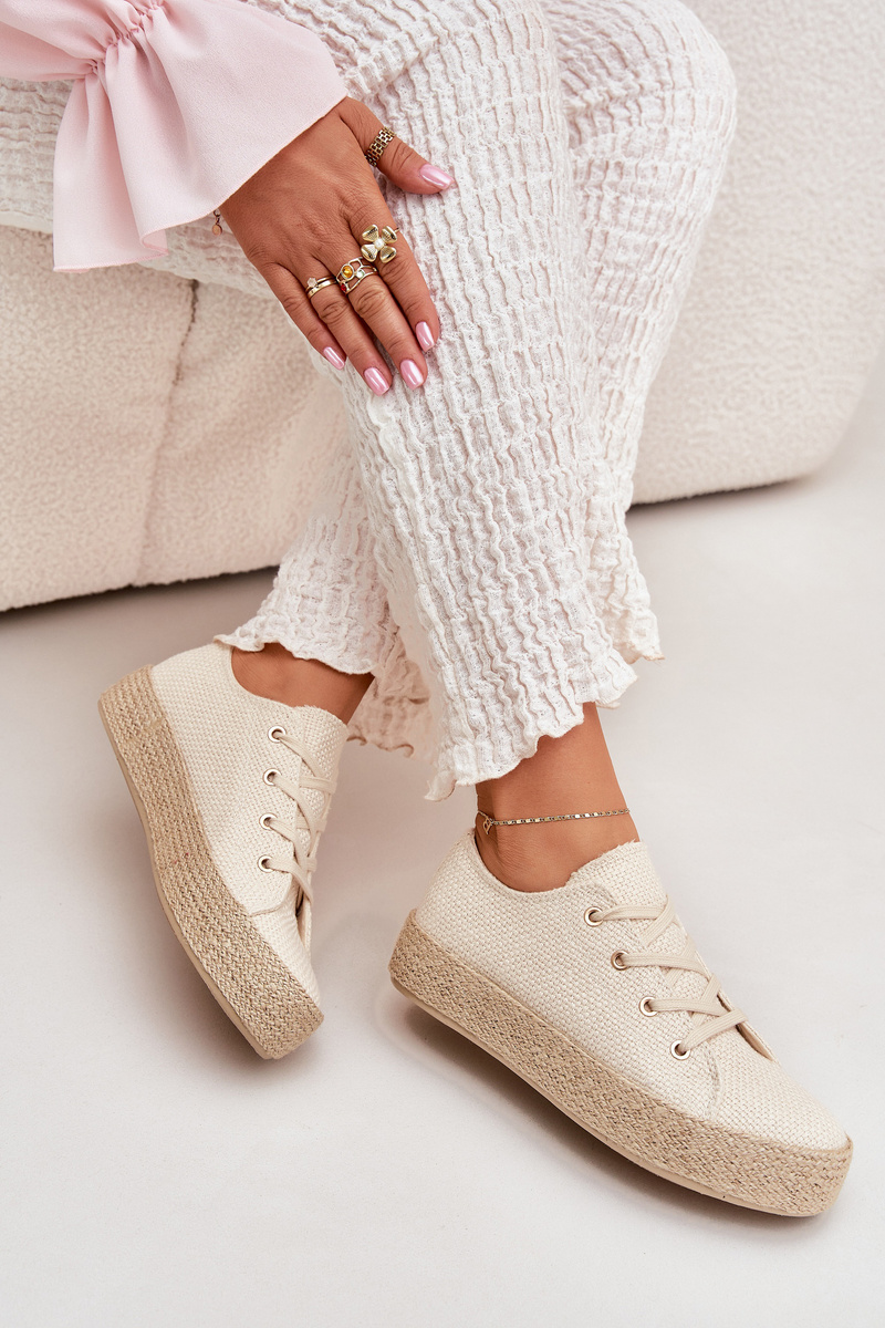 Women's sneakers made of textile material, set on a platform with braiding, are a comfortable and stylish option for everyday wear. The rounded toes give them a subtle character, while the classic lacing ensures a perfect fit. Ideal for casual styles, they combine comfort with a fashionable look. When choosing a size, please refer to the size chart.