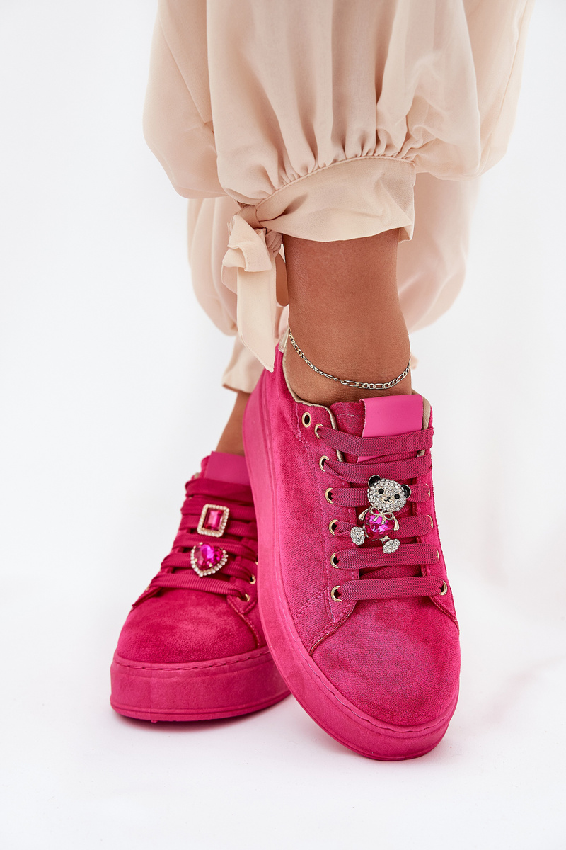 Women's sneakers made of eco leather that combine style and comfort. Set on a platform, they provide comfort all day long, and an additional bear-shaped pin adds original charm. Perfect for women who want to combine a fashionable look with functionality! When choosing a size, please refer to the size chart.