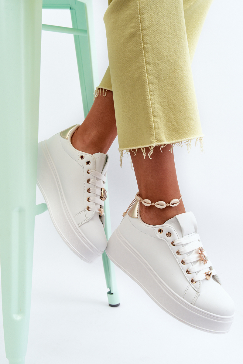 Women's sneakers made of eco leather. Set on a platform that not only adds style, but also provides comfort during wear. Additionally, trendy pins give them a unique charm. Perfect for women who appreciate style and comfort! When choosing a size, please refer to the size chart.