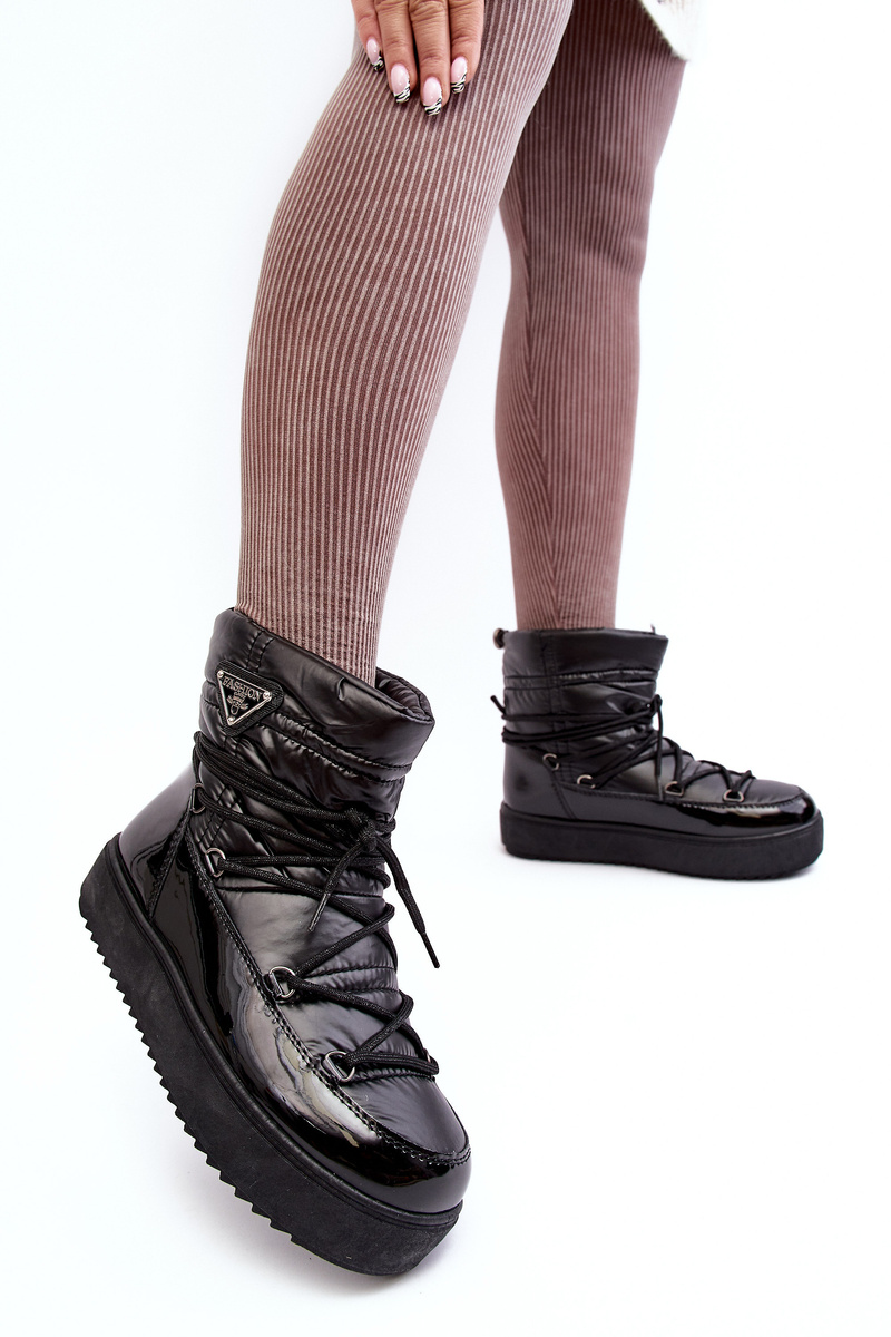 Women's ankle snow boots. Made from a combination of textile material and eco leather. Set on a thick sole that provides excellent insulation from the cold ground. Slip-on style with shiny laces. Lined with fur for extra warmth. Perfect for cold days! You definitely need to have them! When choosing a size, please refer to the size chart.