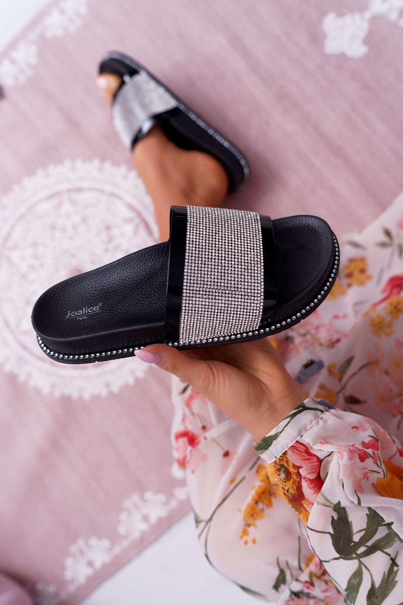 Women's Profiled Flip Flops With Zircons Black Rentre