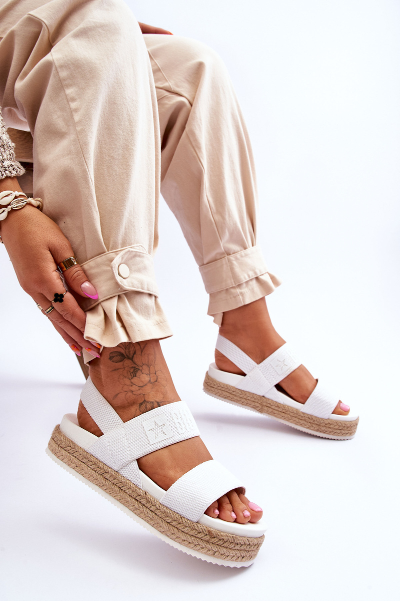 Light, women's sandals from the Big Star brand are made of textile material. This model is retractable. The elastic band will make it easier to put on the shoes. The sandals were placed on a massive platform decorated with jute braid. Sandals have a plastic insert. Be sure to check out the other models of sandals from the Big Star brand! When choosing a size, please refer to the size chart.