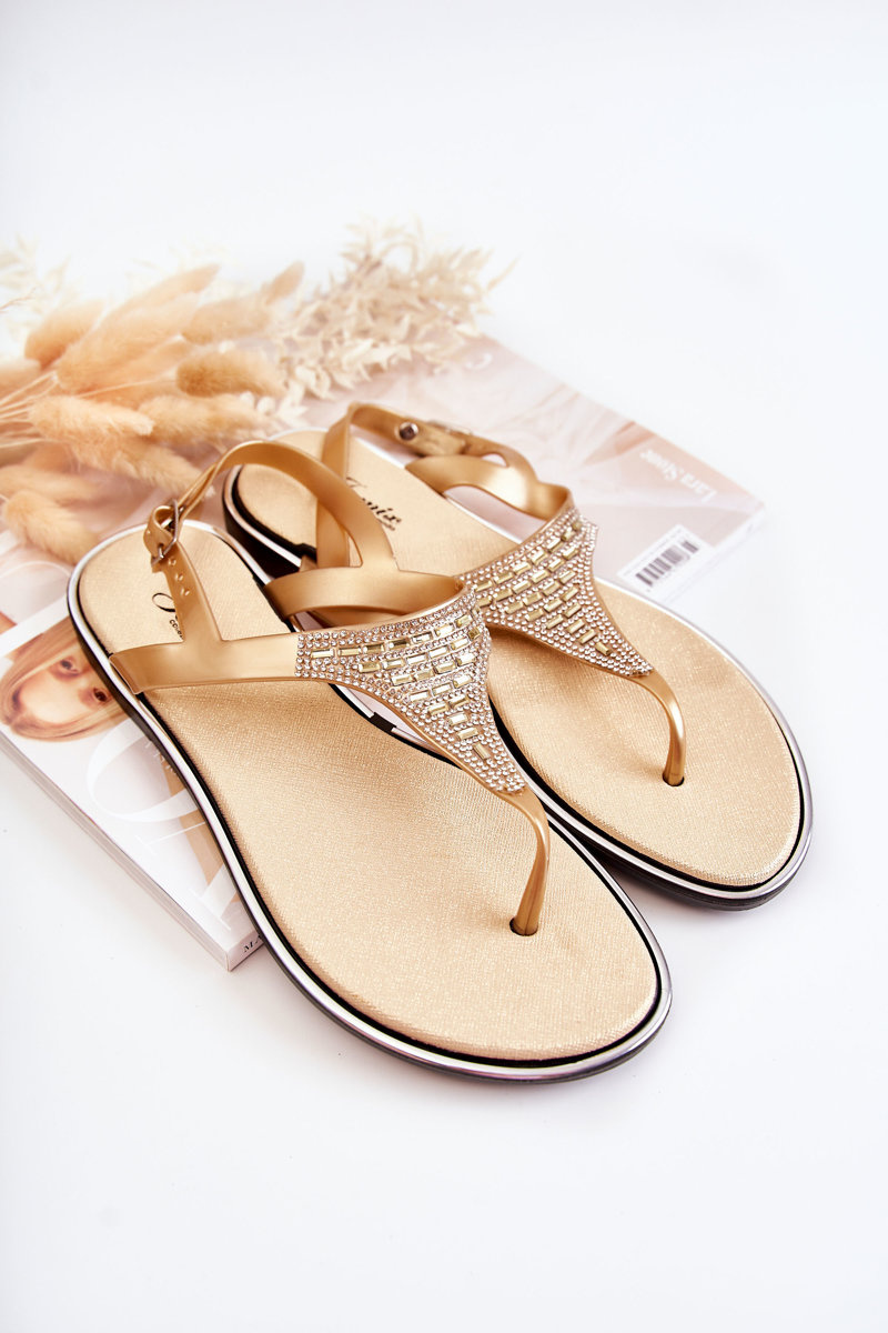 Women's sandals flip-flops with ornaments Gold Atlanta